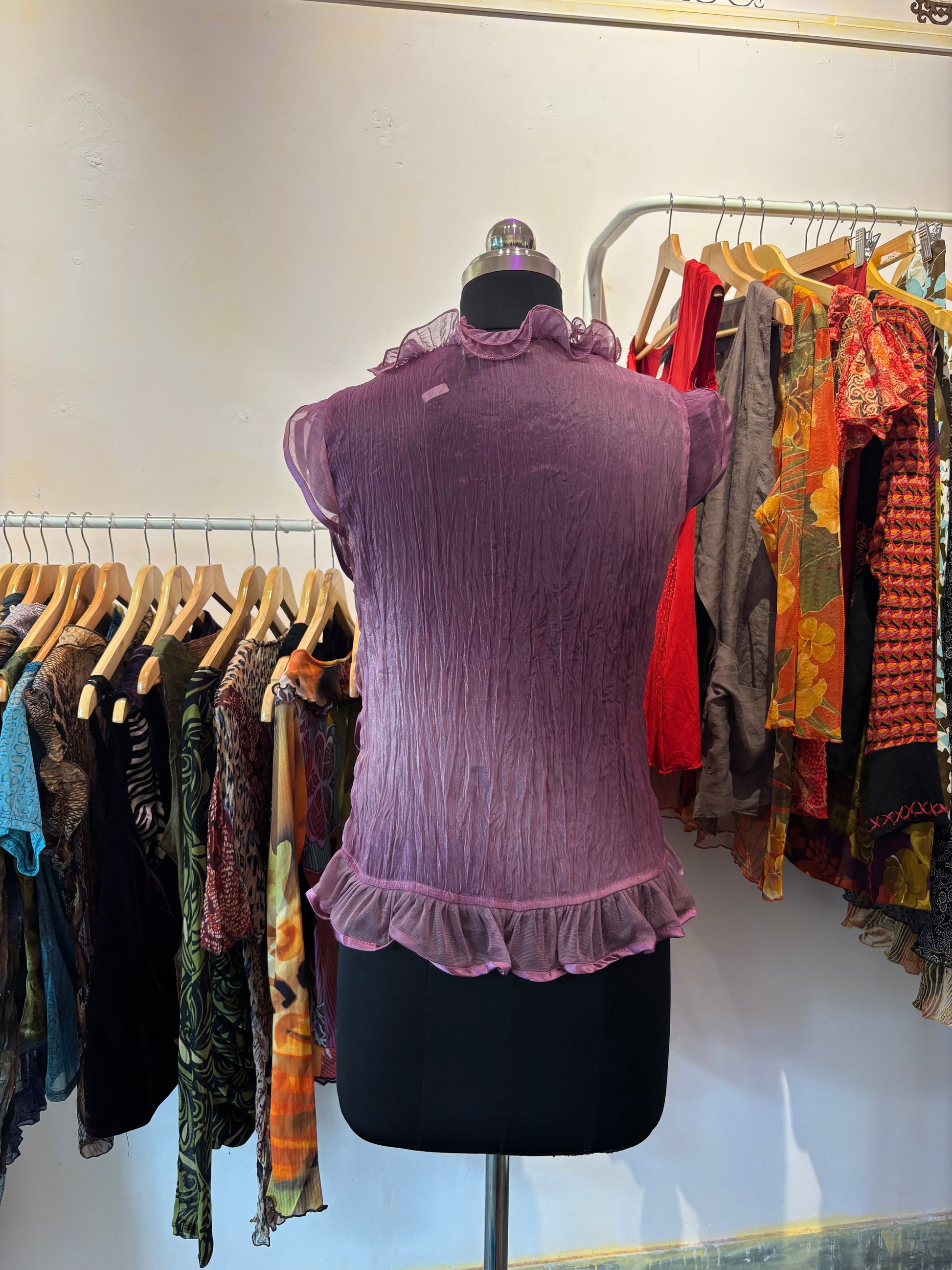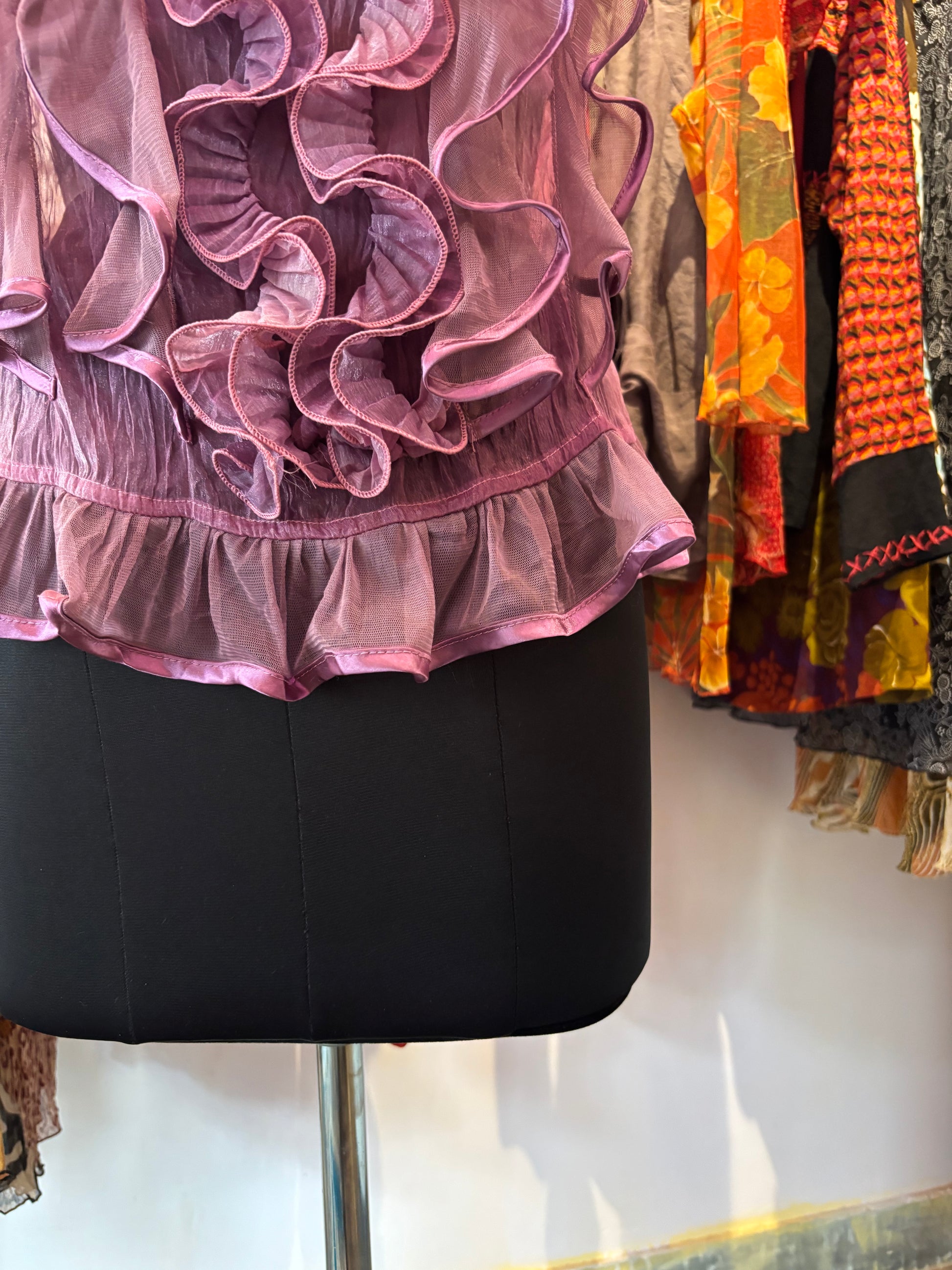 Bust fits 36 to 40 inches. Length 23 inches. Chiffon.