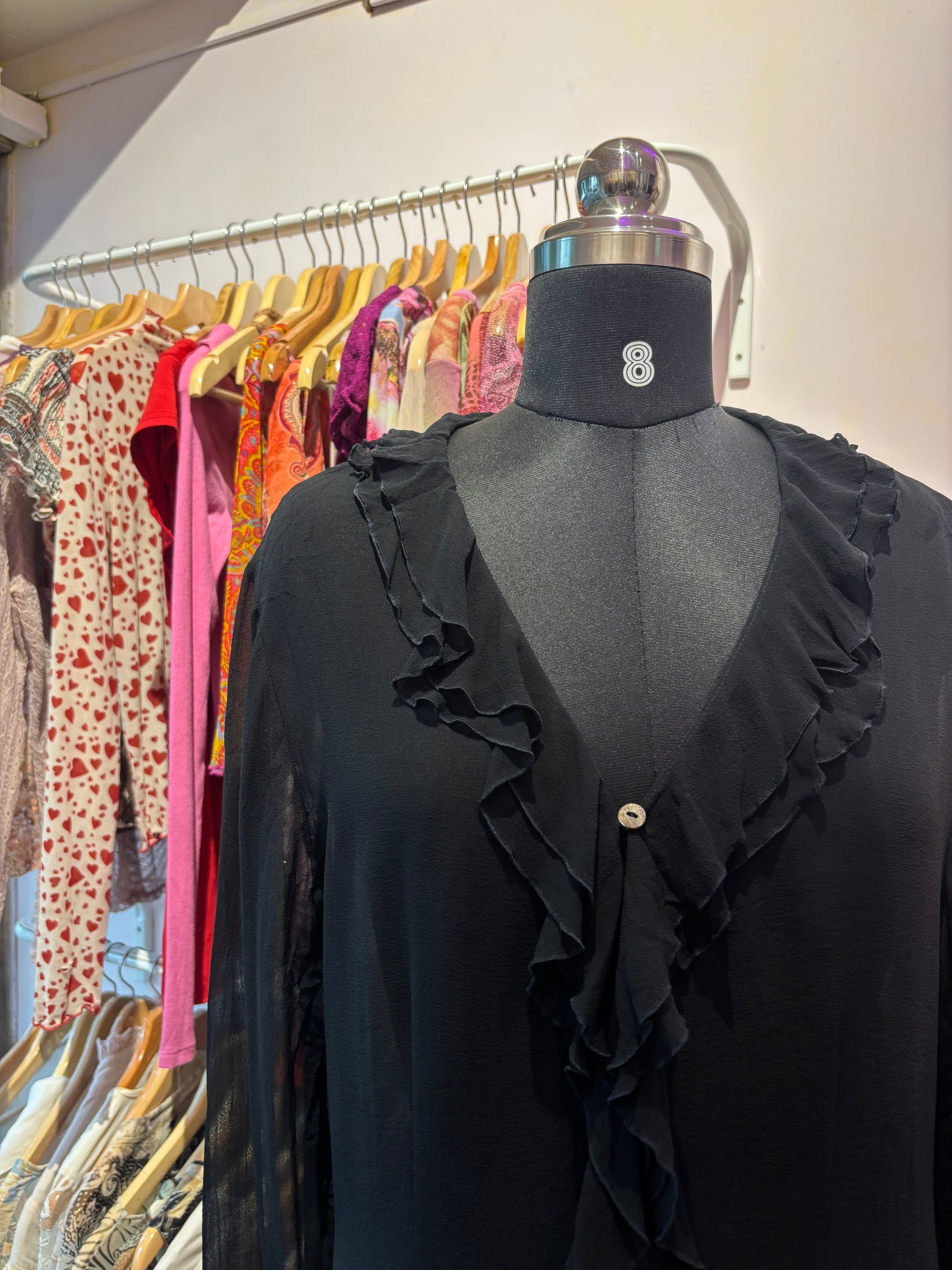 Black ruffle neck