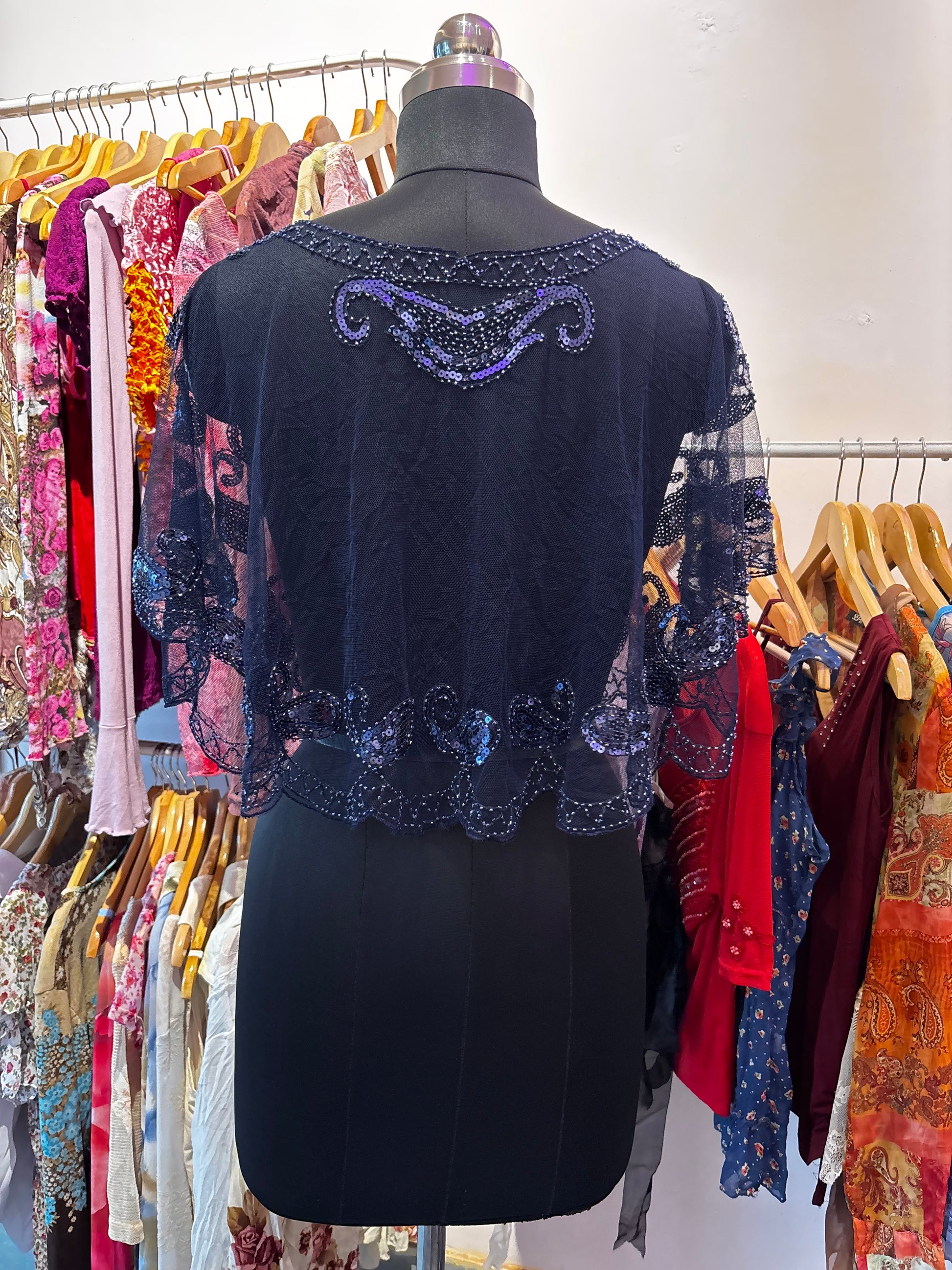 Blue overwear with sequins and bead