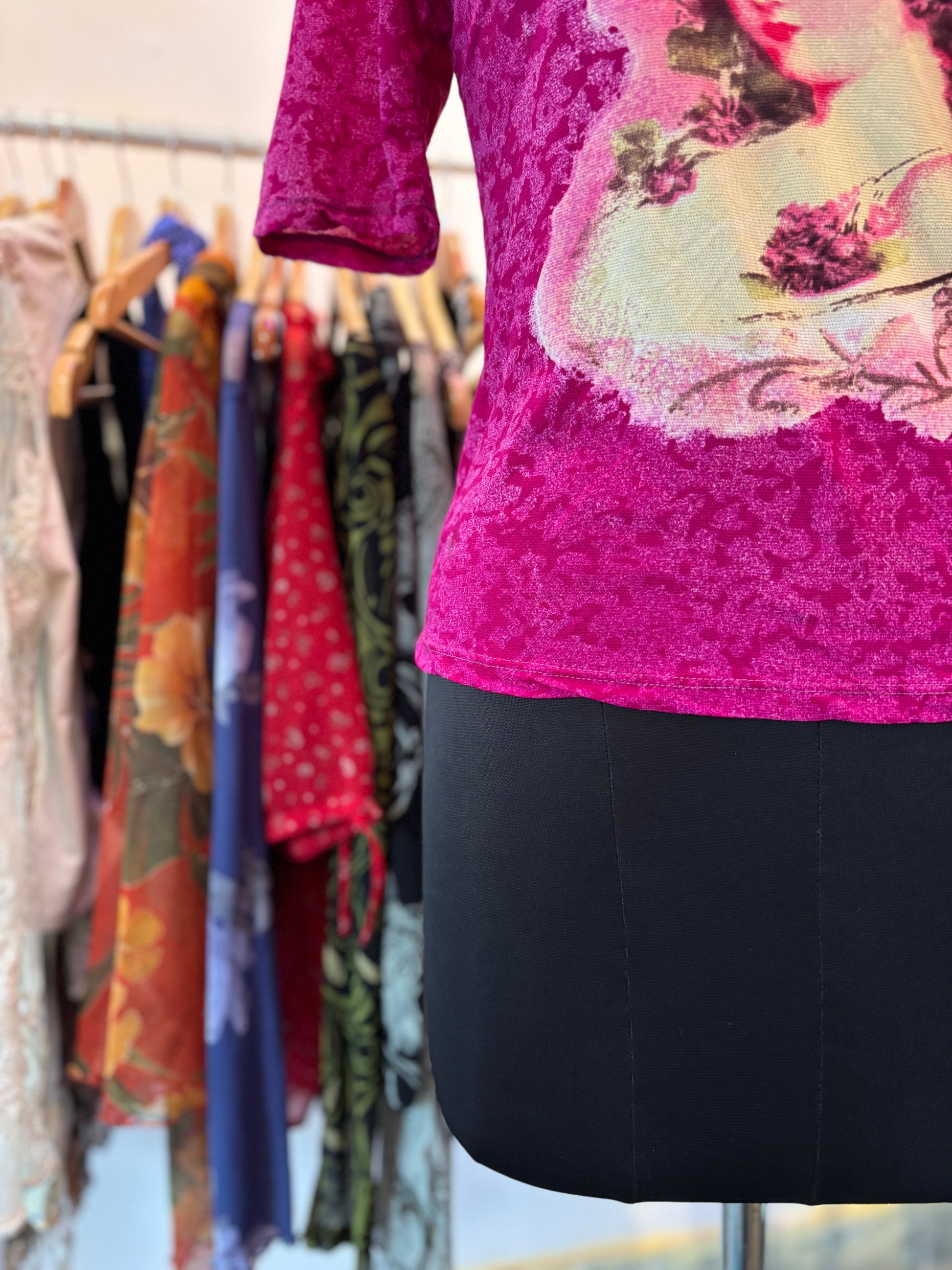 Bust 36 ( stretches upto 46) inches. Length 23 inches. Mesh.