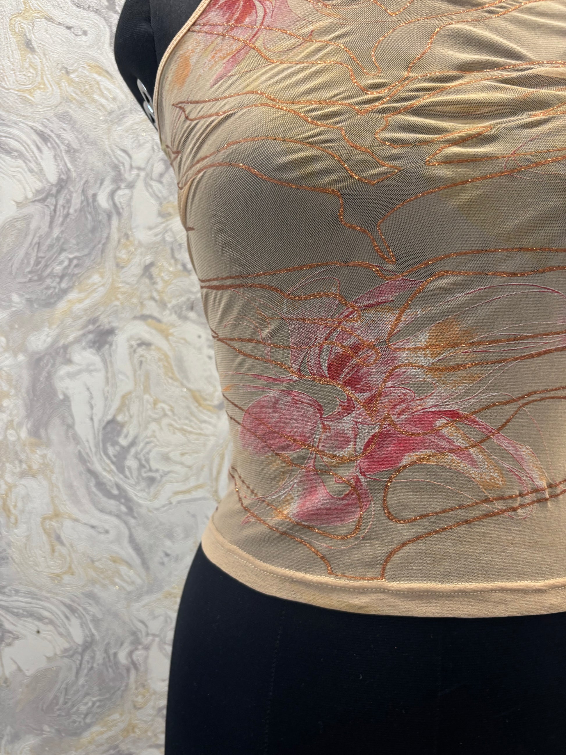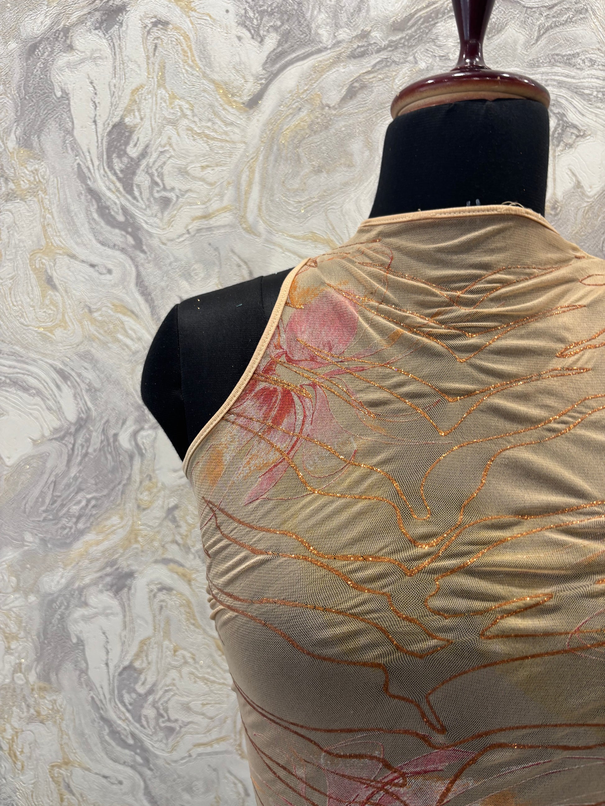 Bust 26 ( stretches upto 36) inches. Length 19 inches. Mesh.