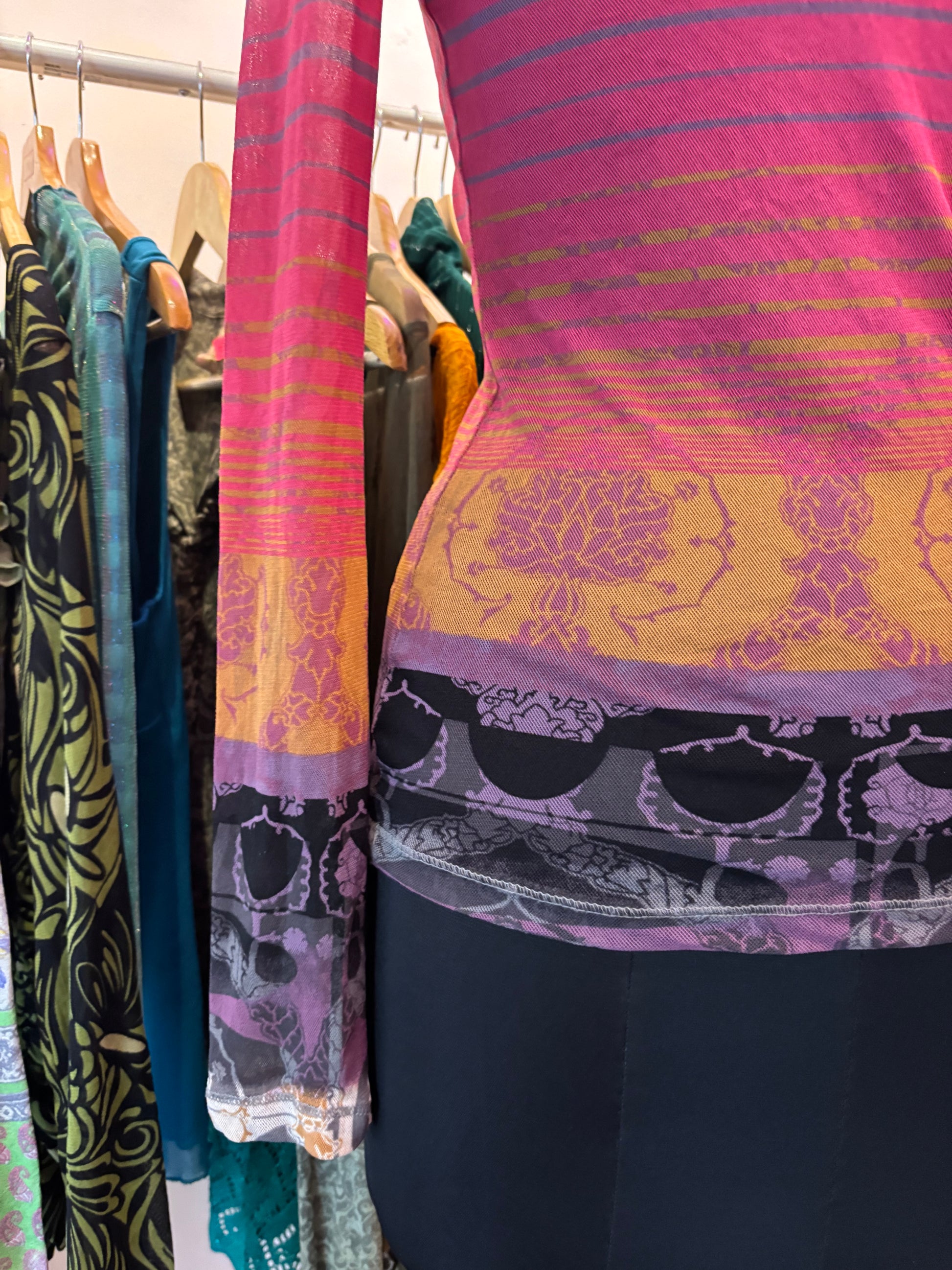 Bust 32 (stretches upto 44) inches. Length 26 inches. Mesh