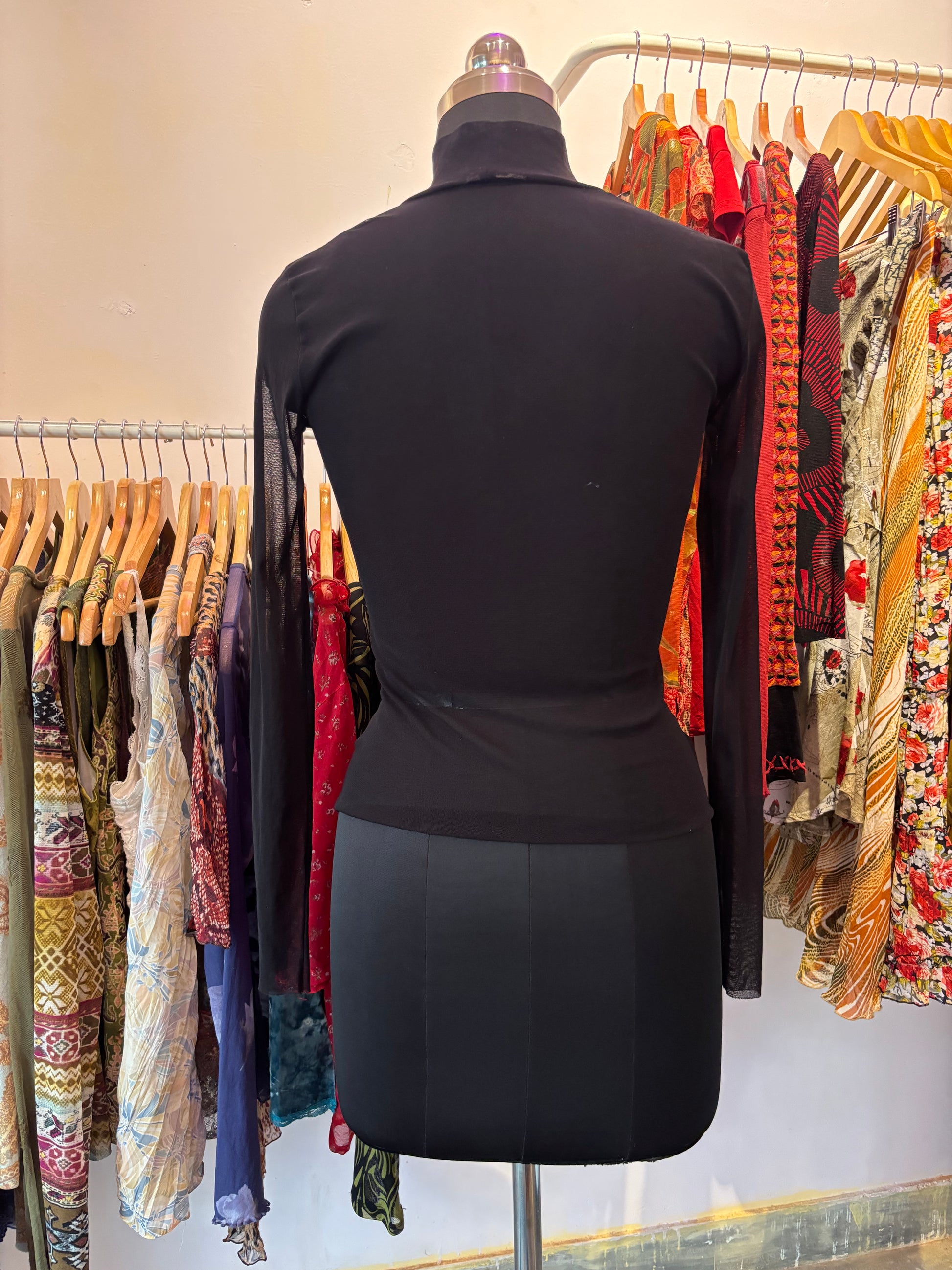 Bust 30 ( stretches upto 38) inches. Length 24 inches. Mesh. Embroidered