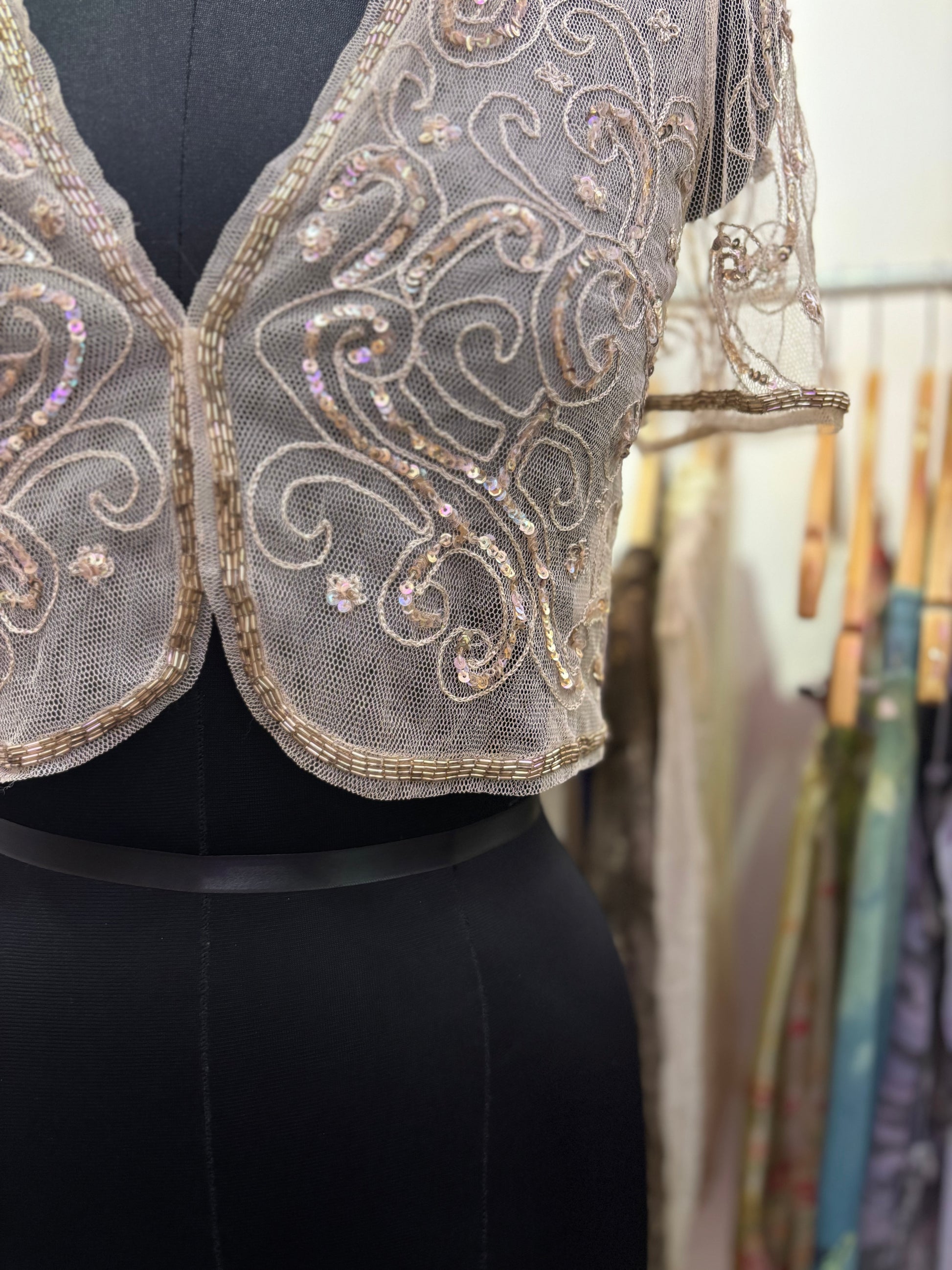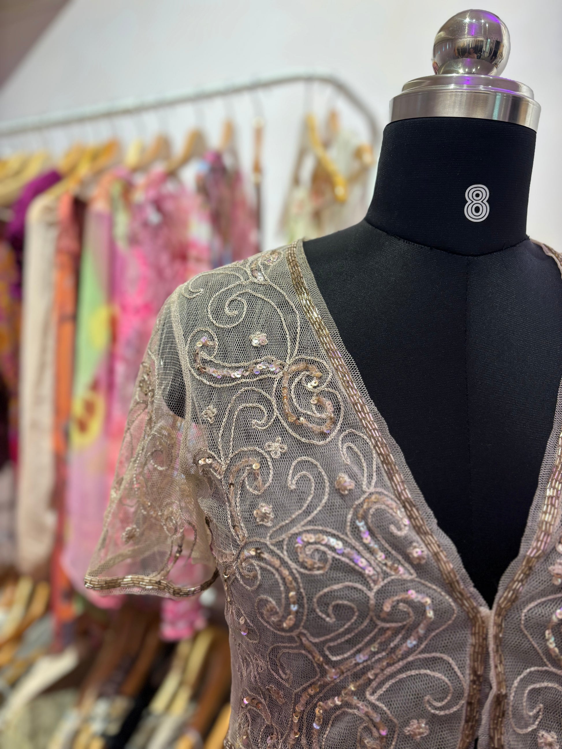 Bust fits 34 to 40 inches. Length 15. Bead with sequins and katdana work.