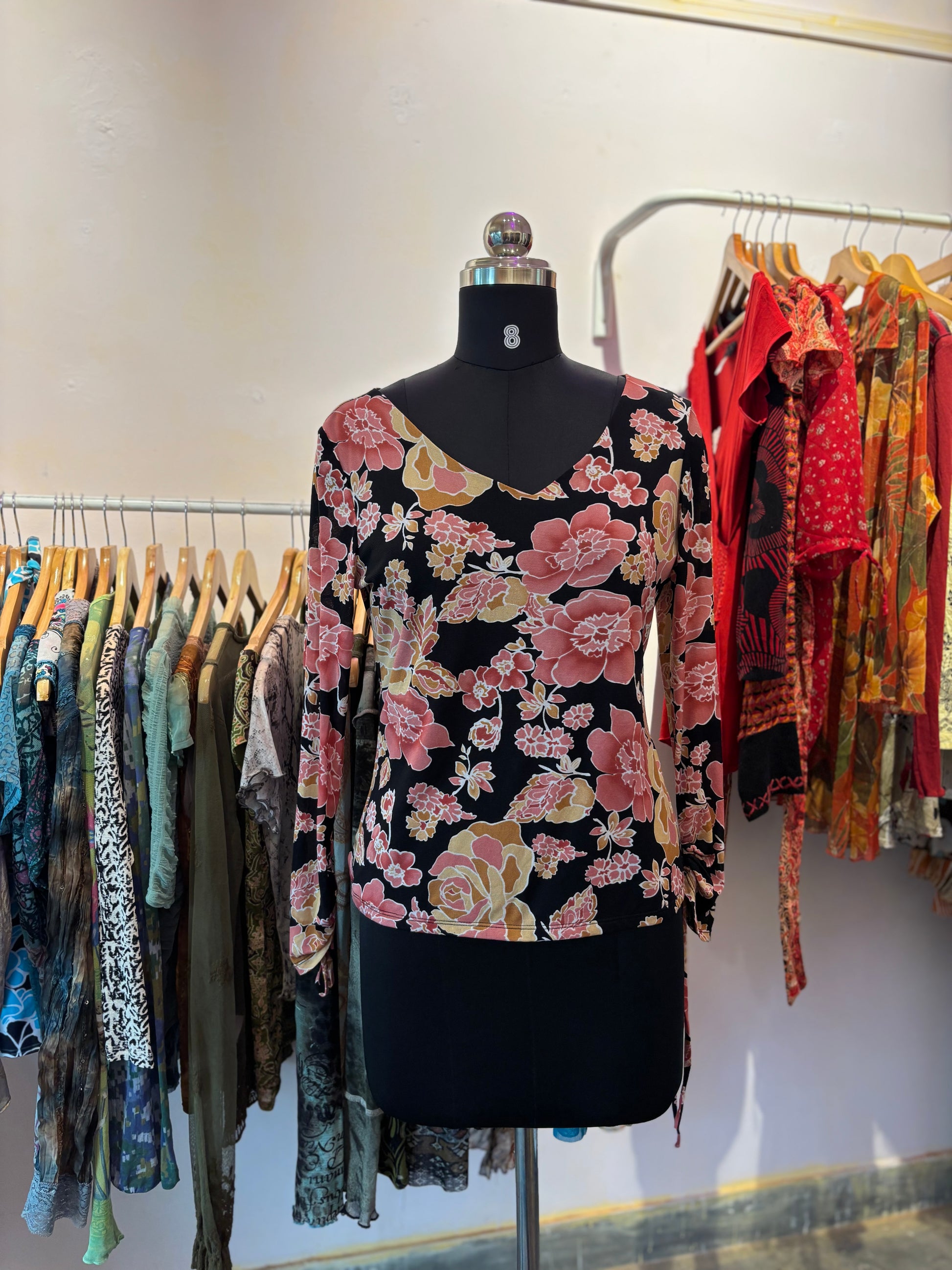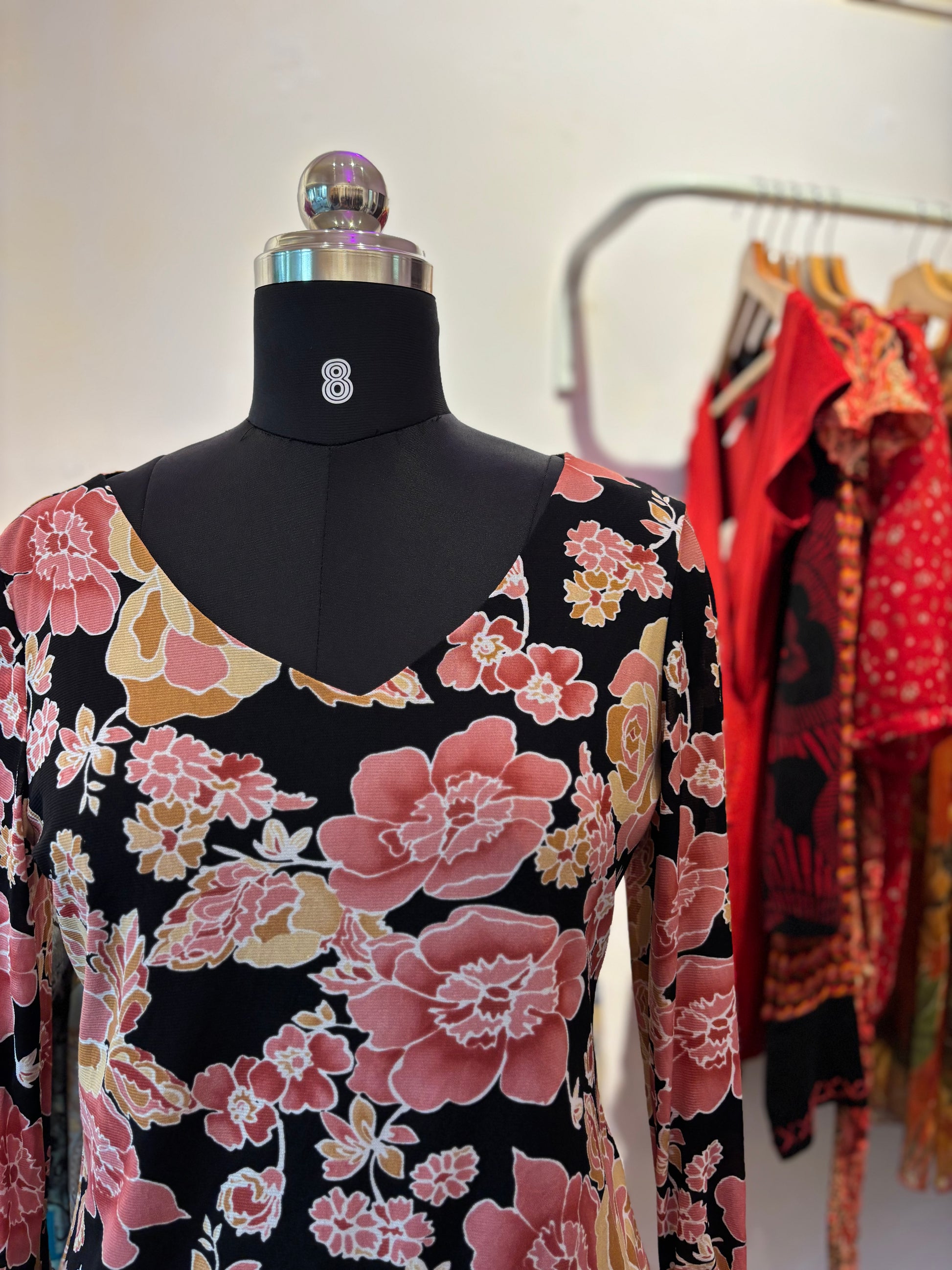 Bust 38 ( stretches upto 52) inches. Length 23 inches. Mesh. Lined