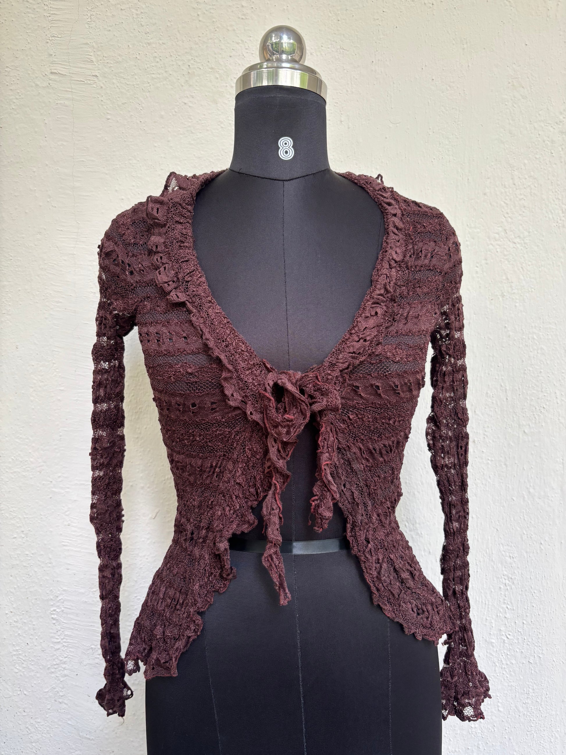 Bust 28 to 34 inches. Length 23 inches. Lacy