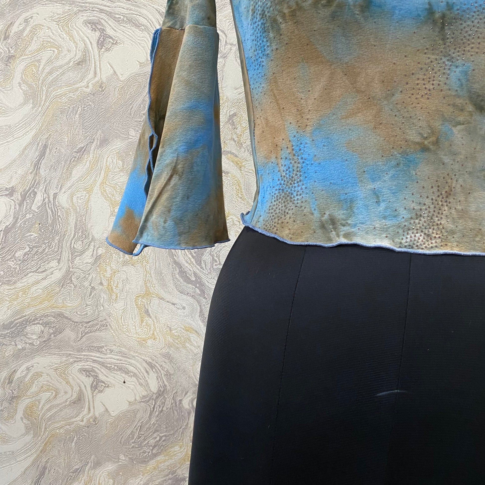 Bust 26 (stretches upto 36) inches . Length 16 inches. Mesh