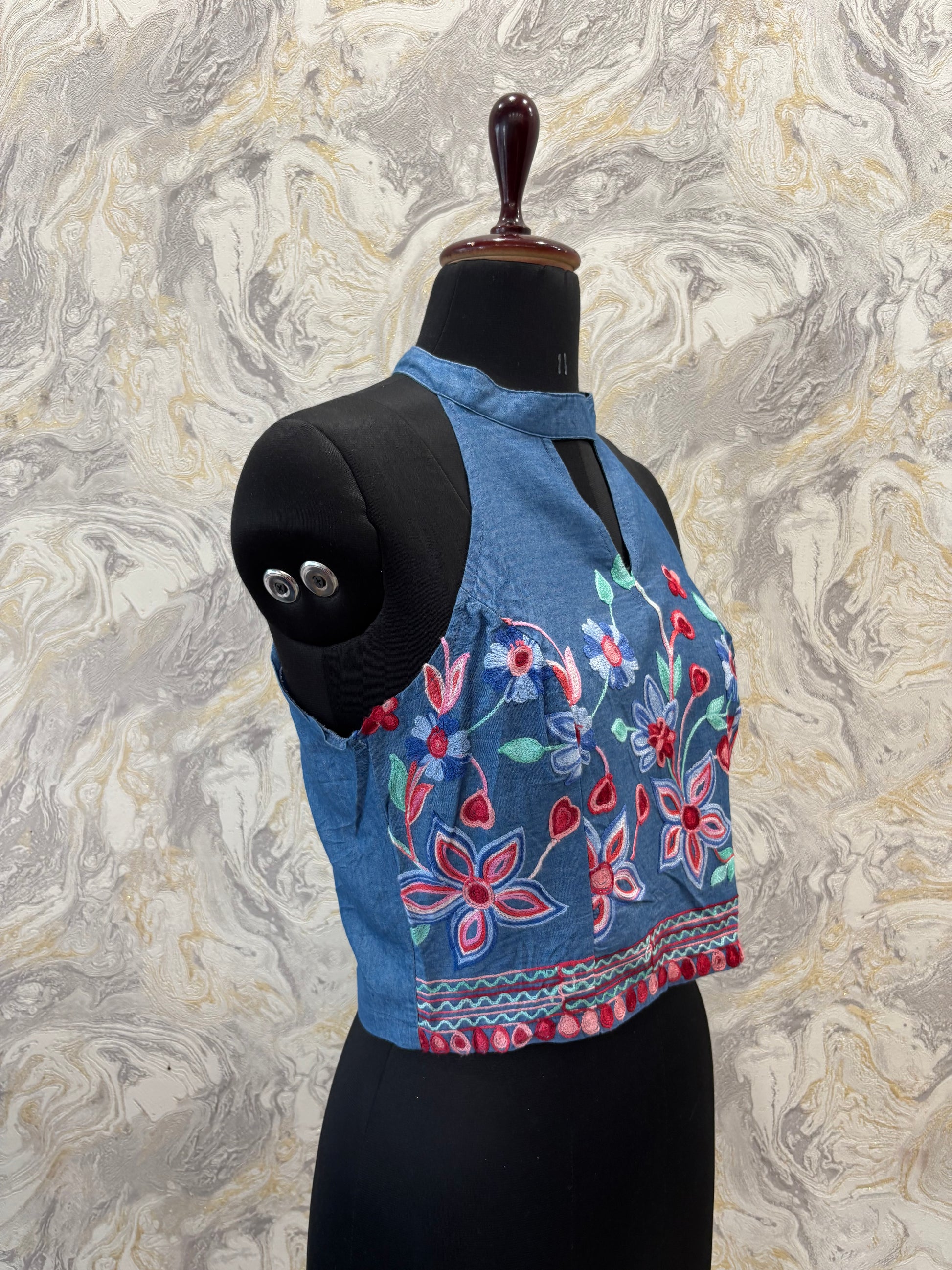 Embroidered denim top