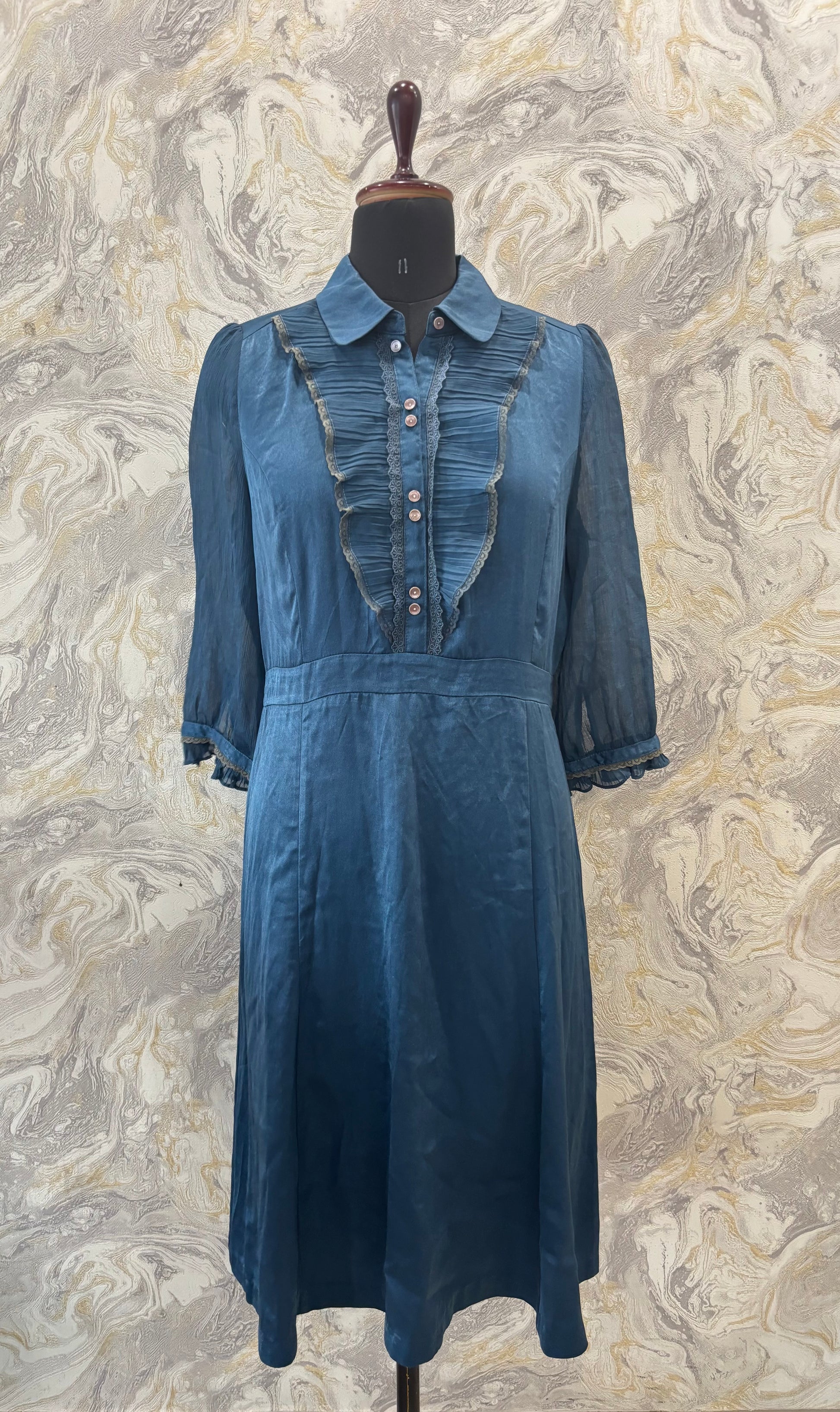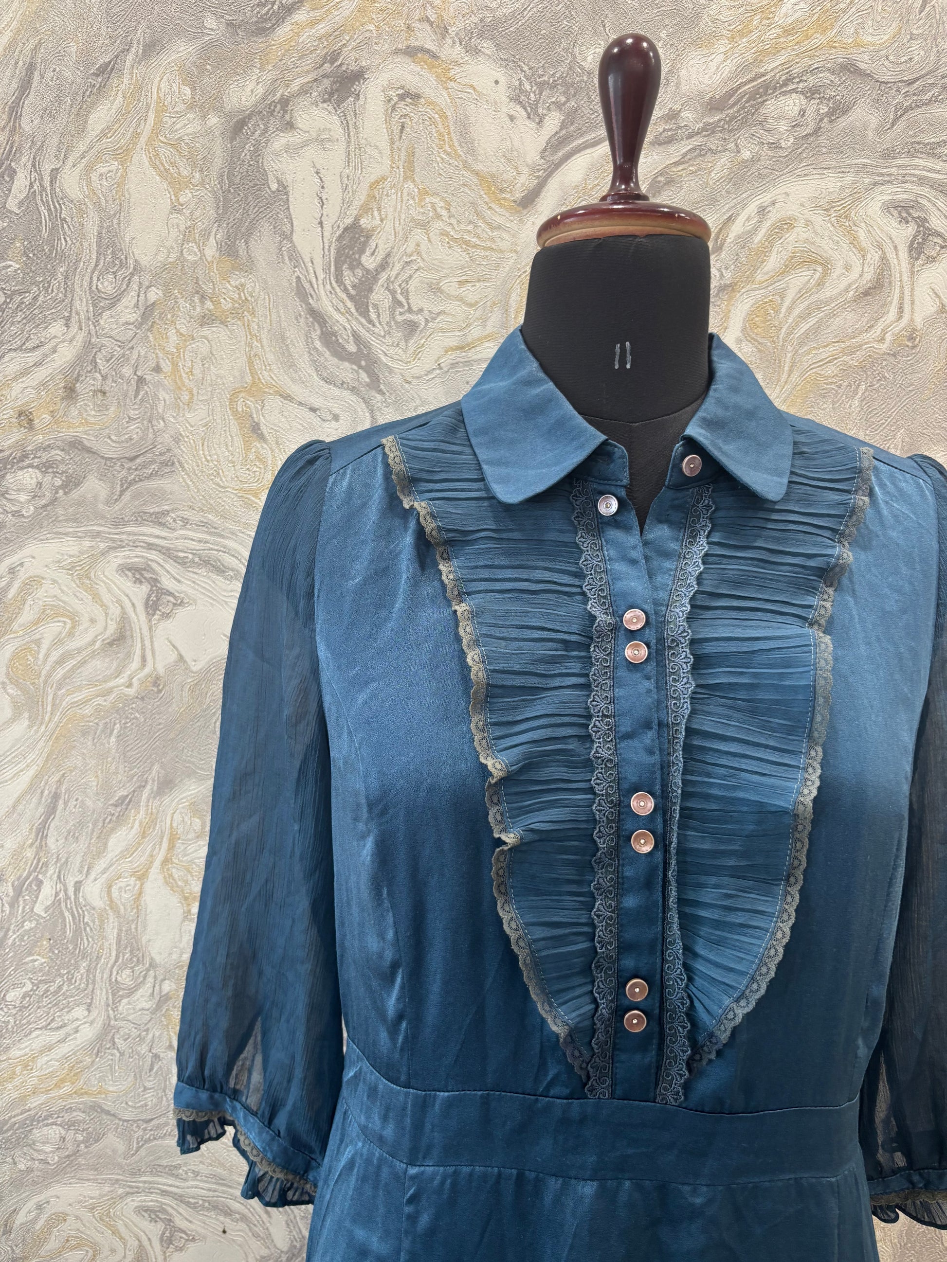 Bust 36/38 inches. Length 44 inches. Super smooth fabric with chiffon sleeves. Lined