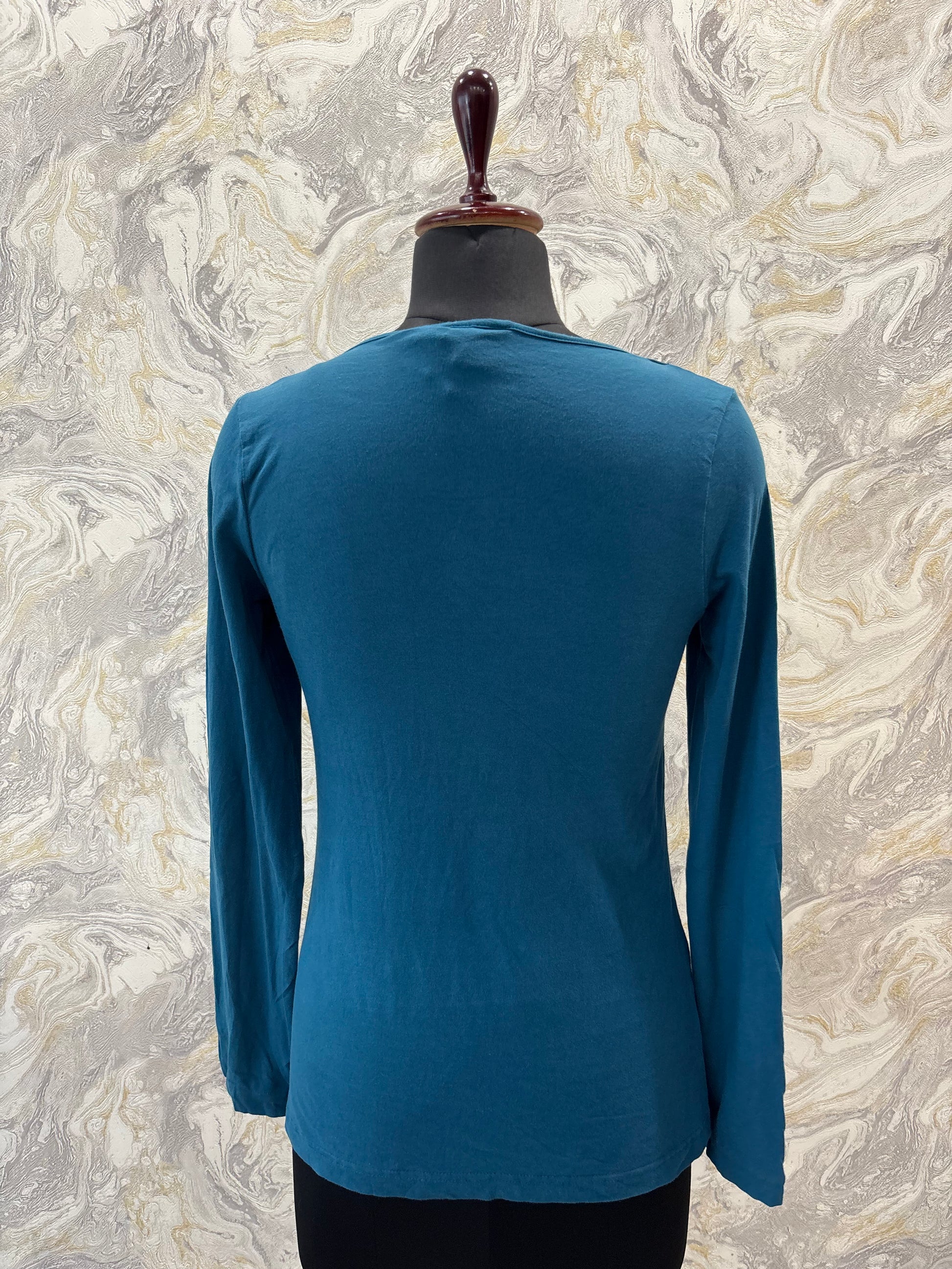 Bust 34 ( stretches upto 44) inches. Length 25 inches. Knit. Embroidered