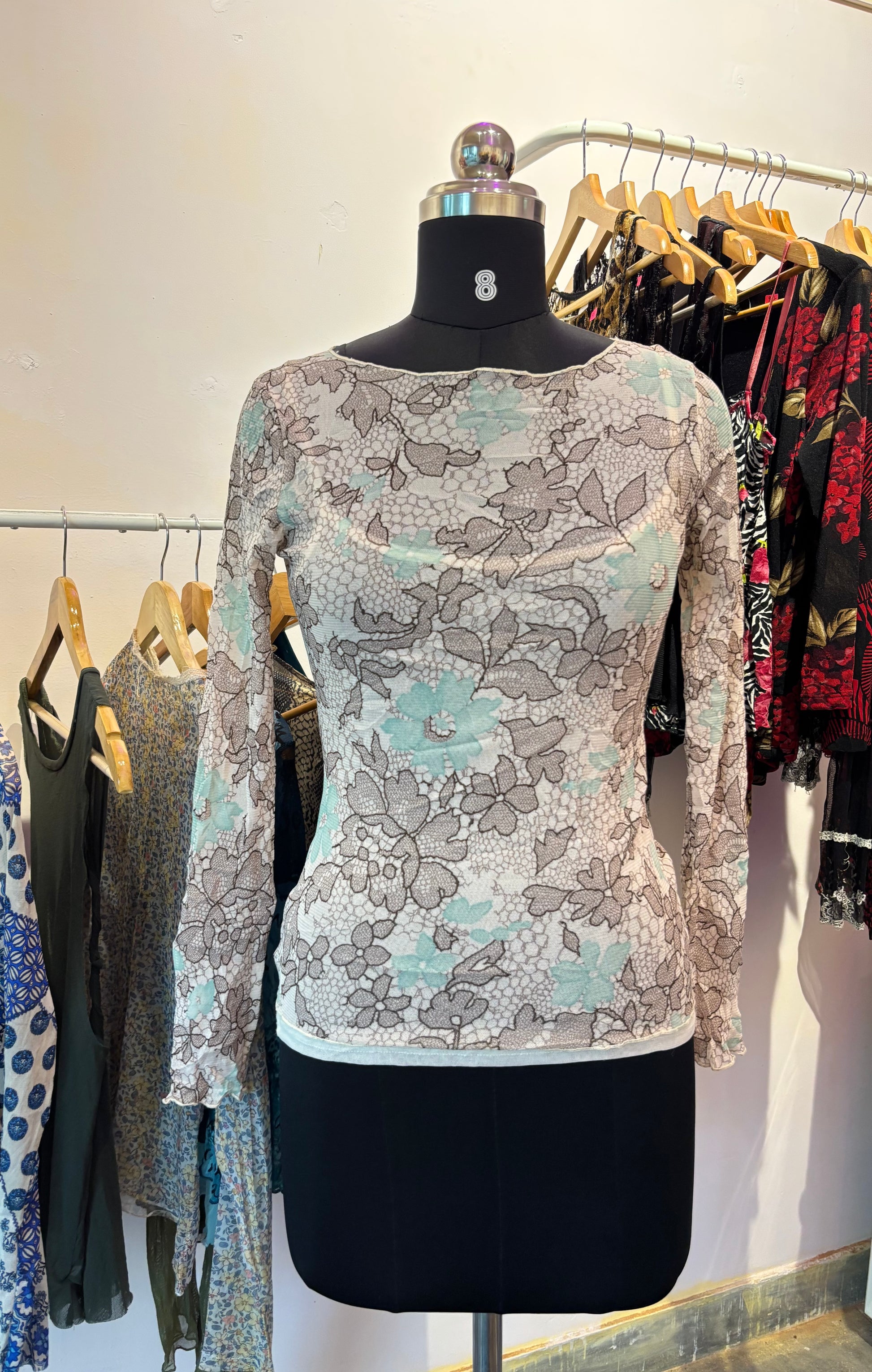 Bust 30 ( stretches upto 38) inches. Length 21 inches. Mesh. Lined