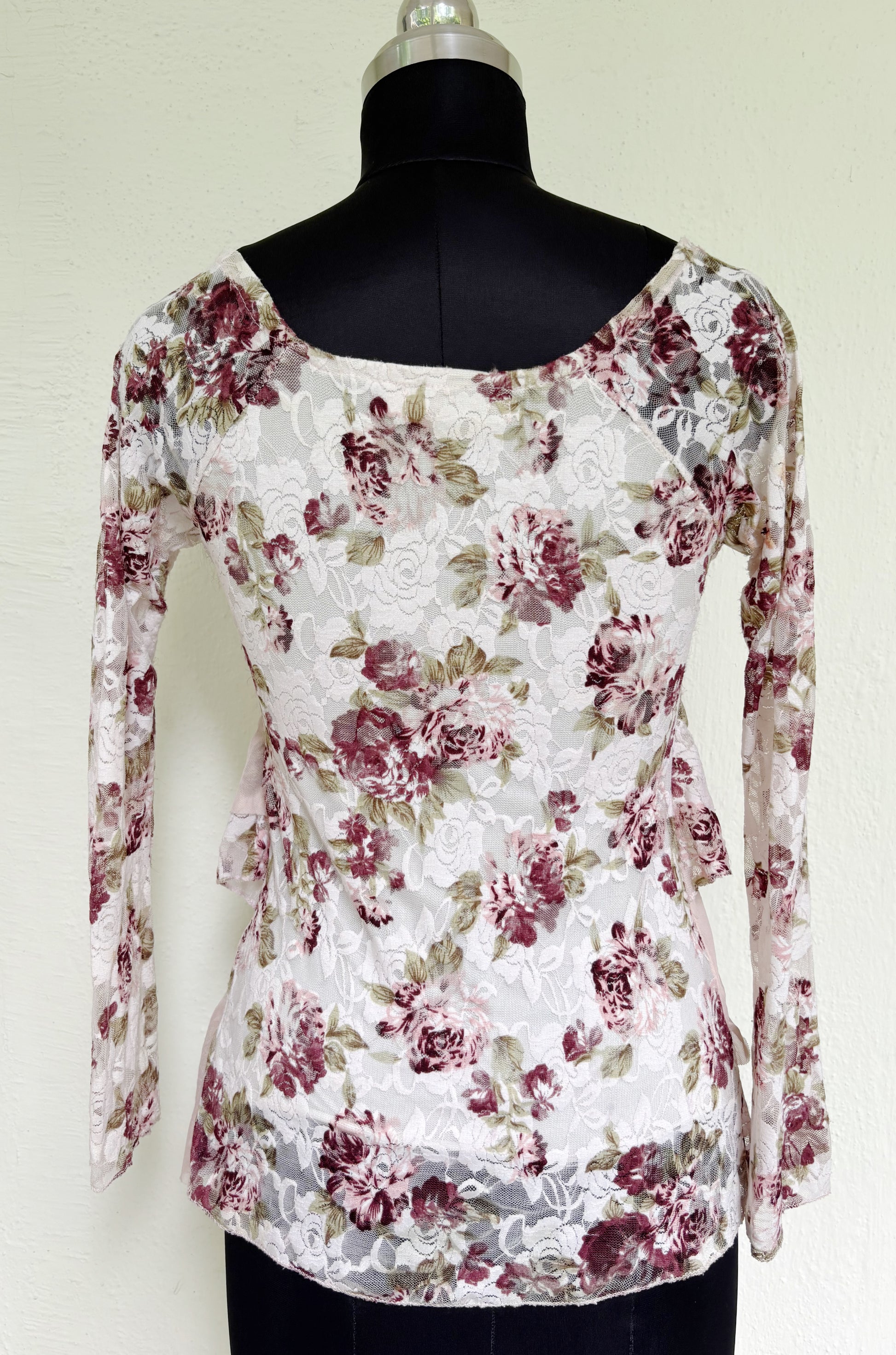 Bust 34 ( stretches upto 37) inches. Length 27 inches. Lacy. Mesh. And embroidered front