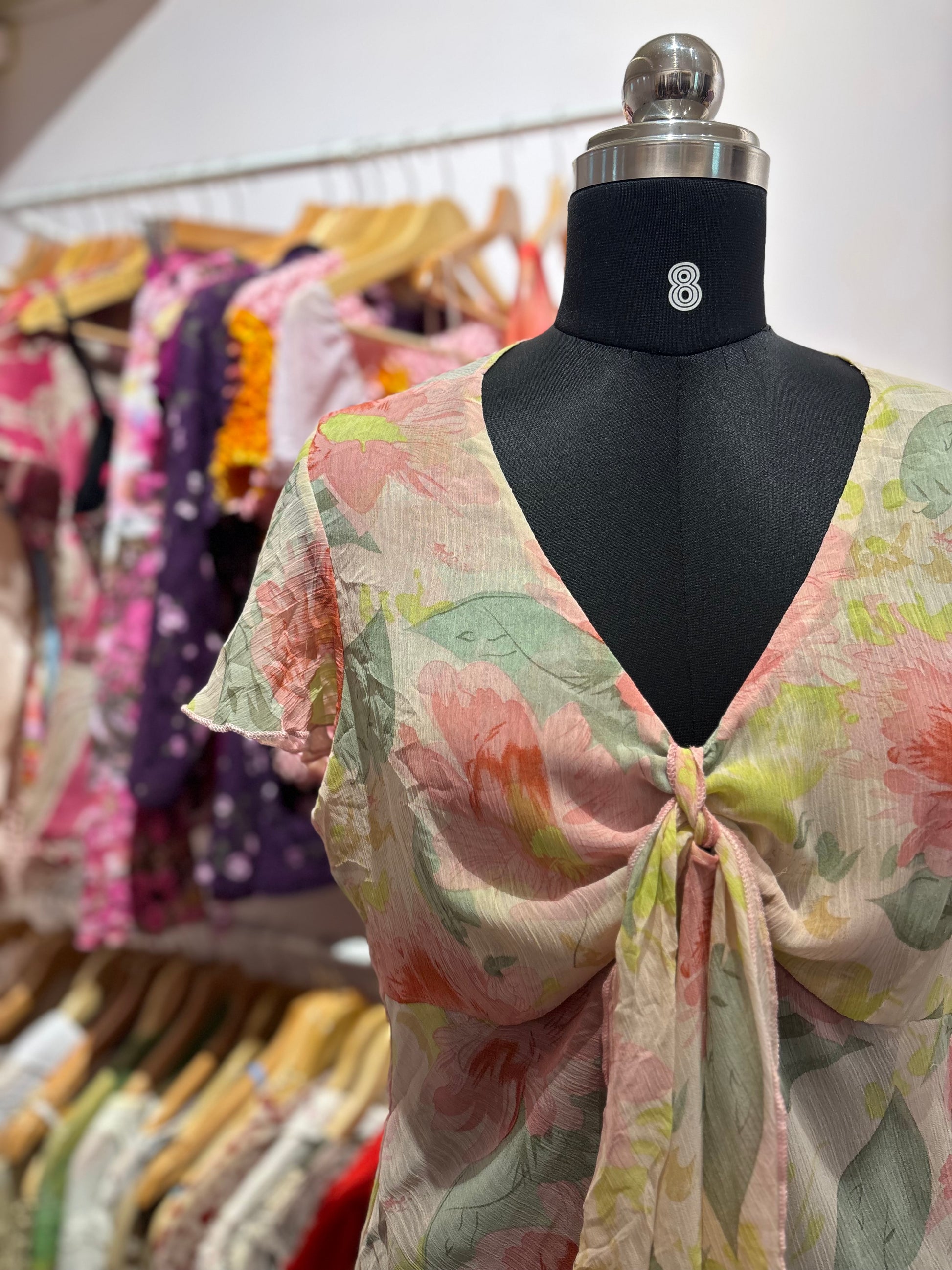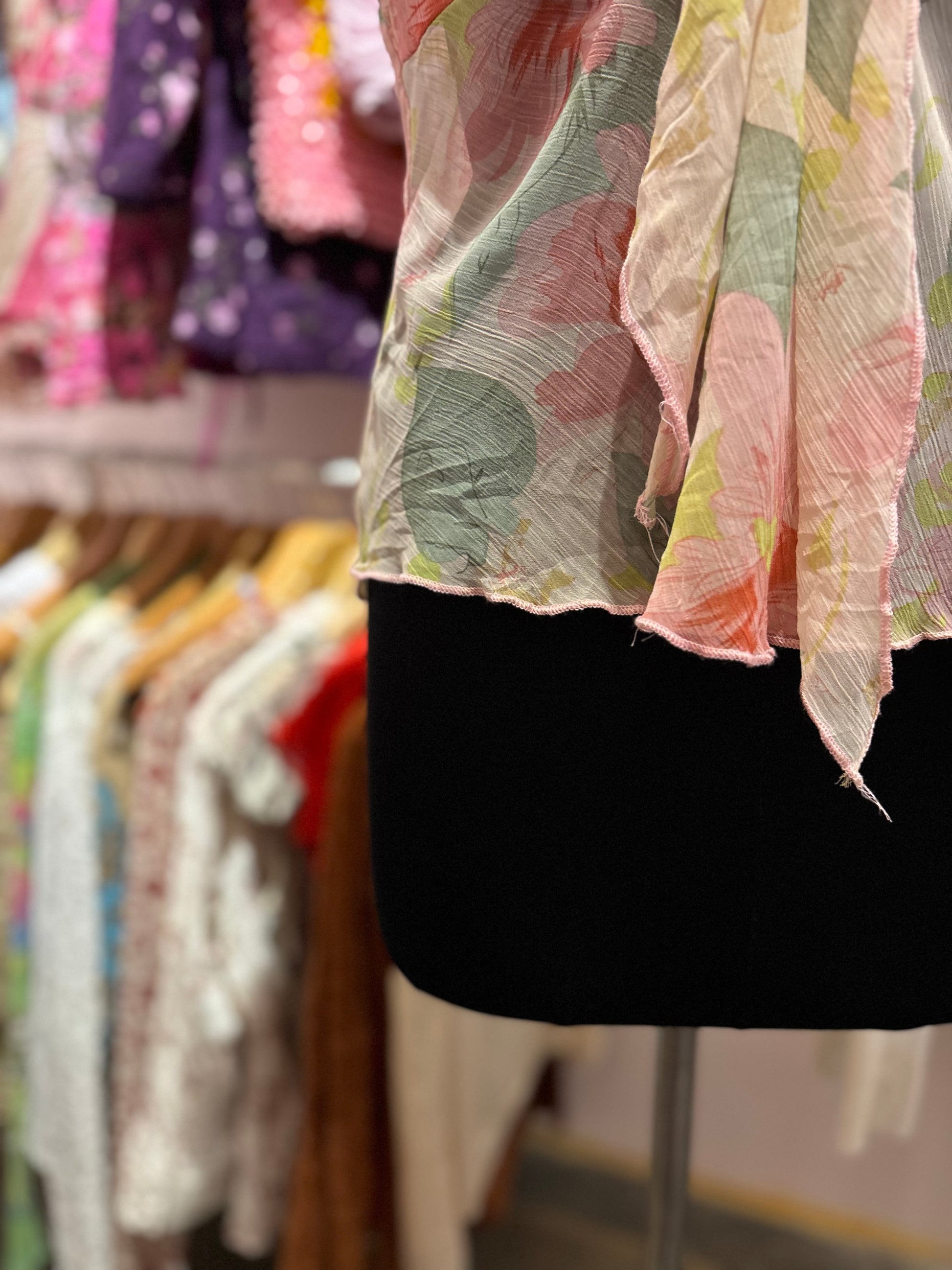 Bust fits 40 to 44 inches. Length 24 inches. Chiffon