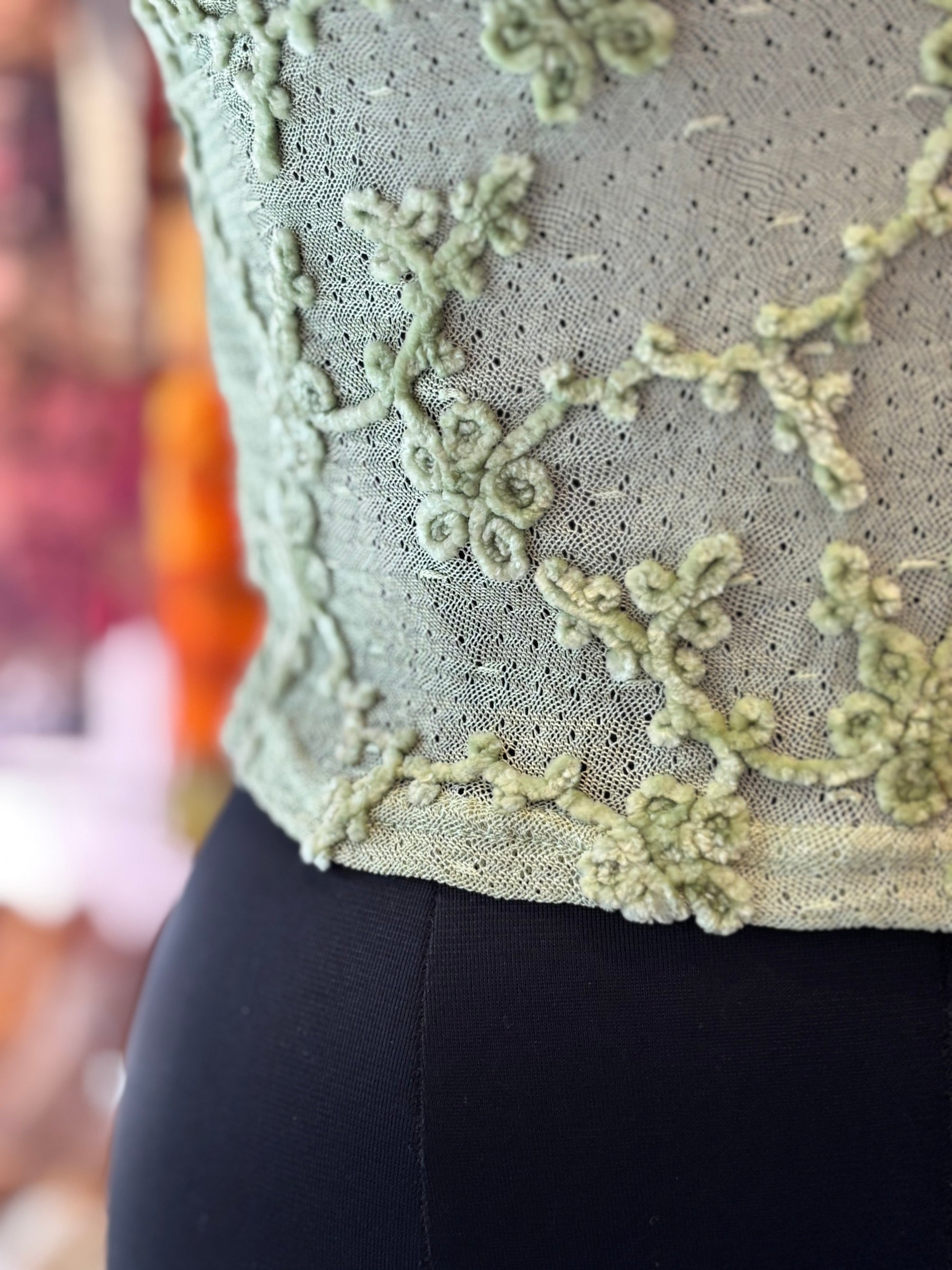 Bust 30 ( stretches upto 36) Inches.Length21 inches. Mesh.Lined bust.Embossed velvet. Adjustable straps