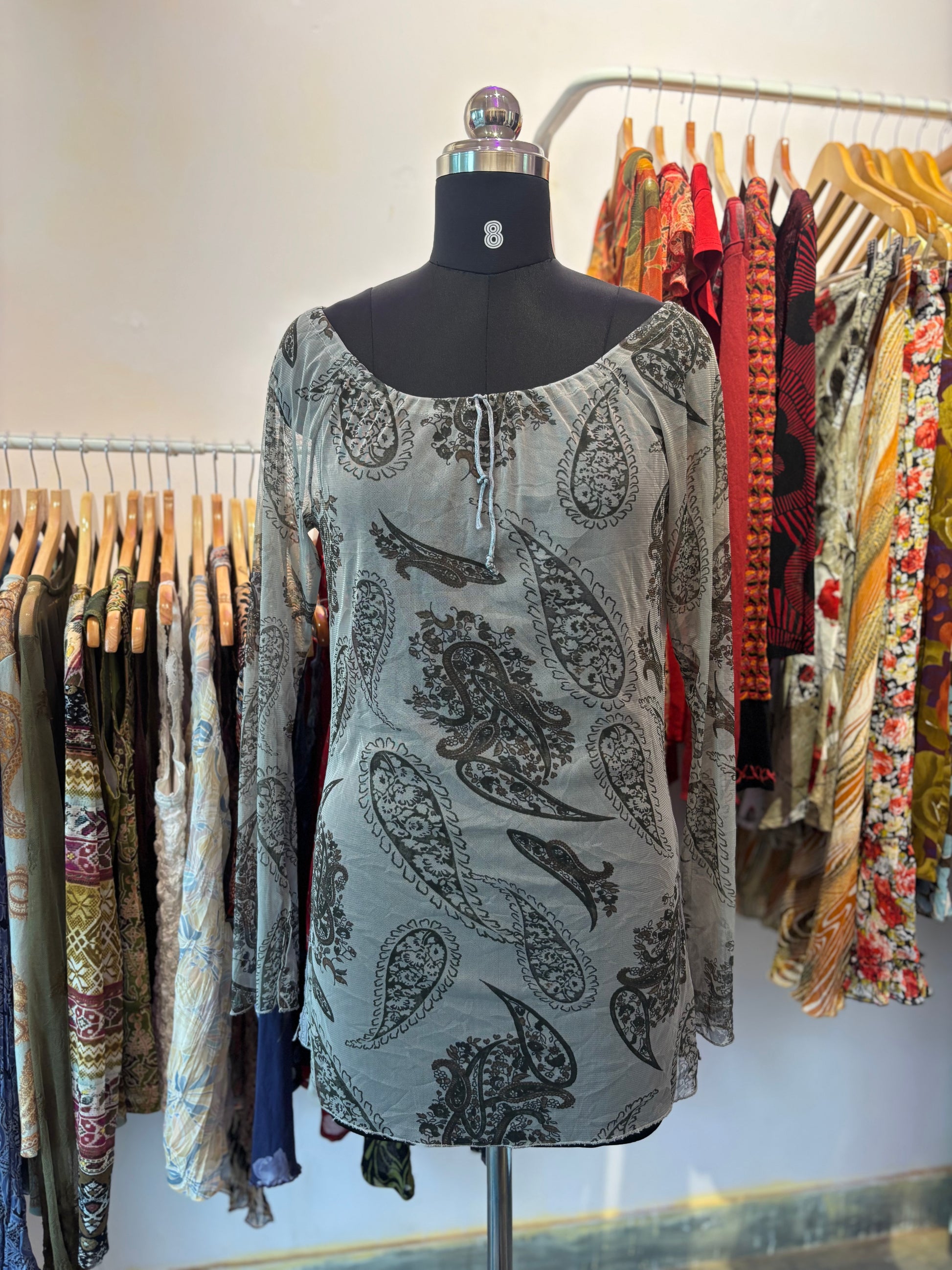 Bust 34 ( stretches upto 44) inches. Length 27 inches. Mesh.