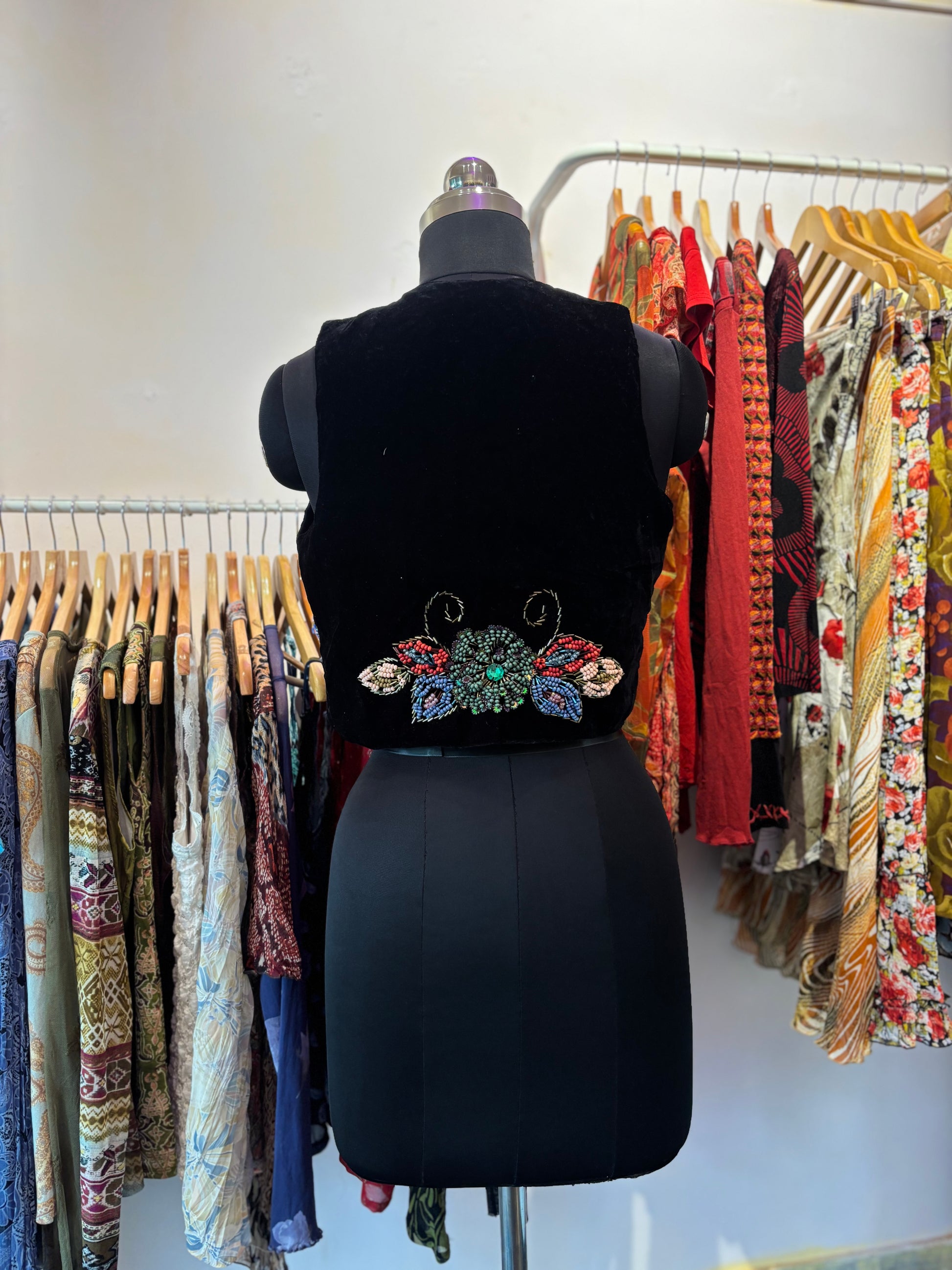 Fits XS to M. Length 19 inches. Velvet. Lined