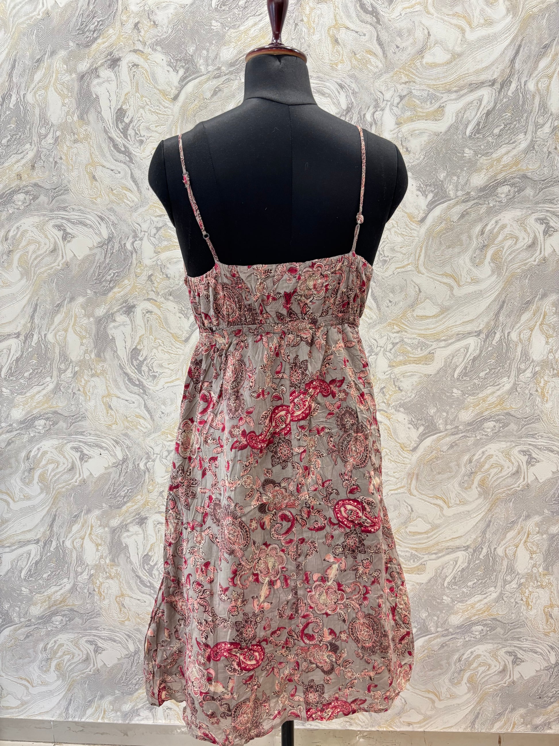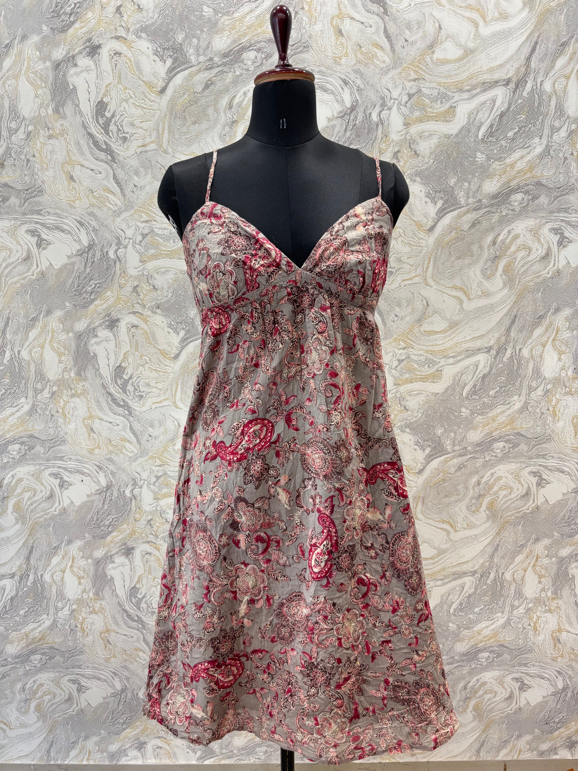 Bust 34 ( stretches upto 42) inches. Length 31 inches. Cotton. Adjustable straps