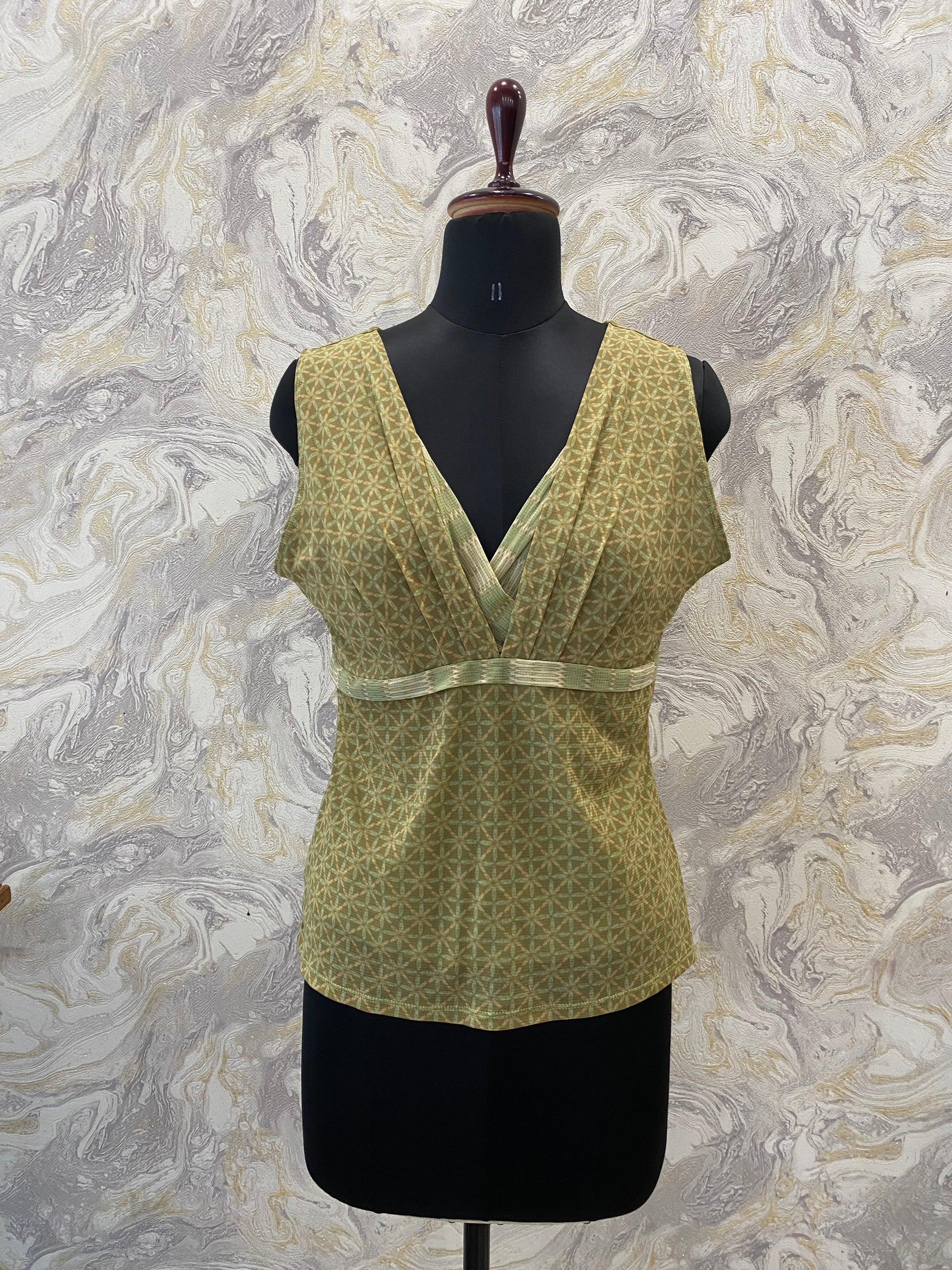 Bust 38 (stretches upto 44) inches. Length 23 inches . Mesh . Lined