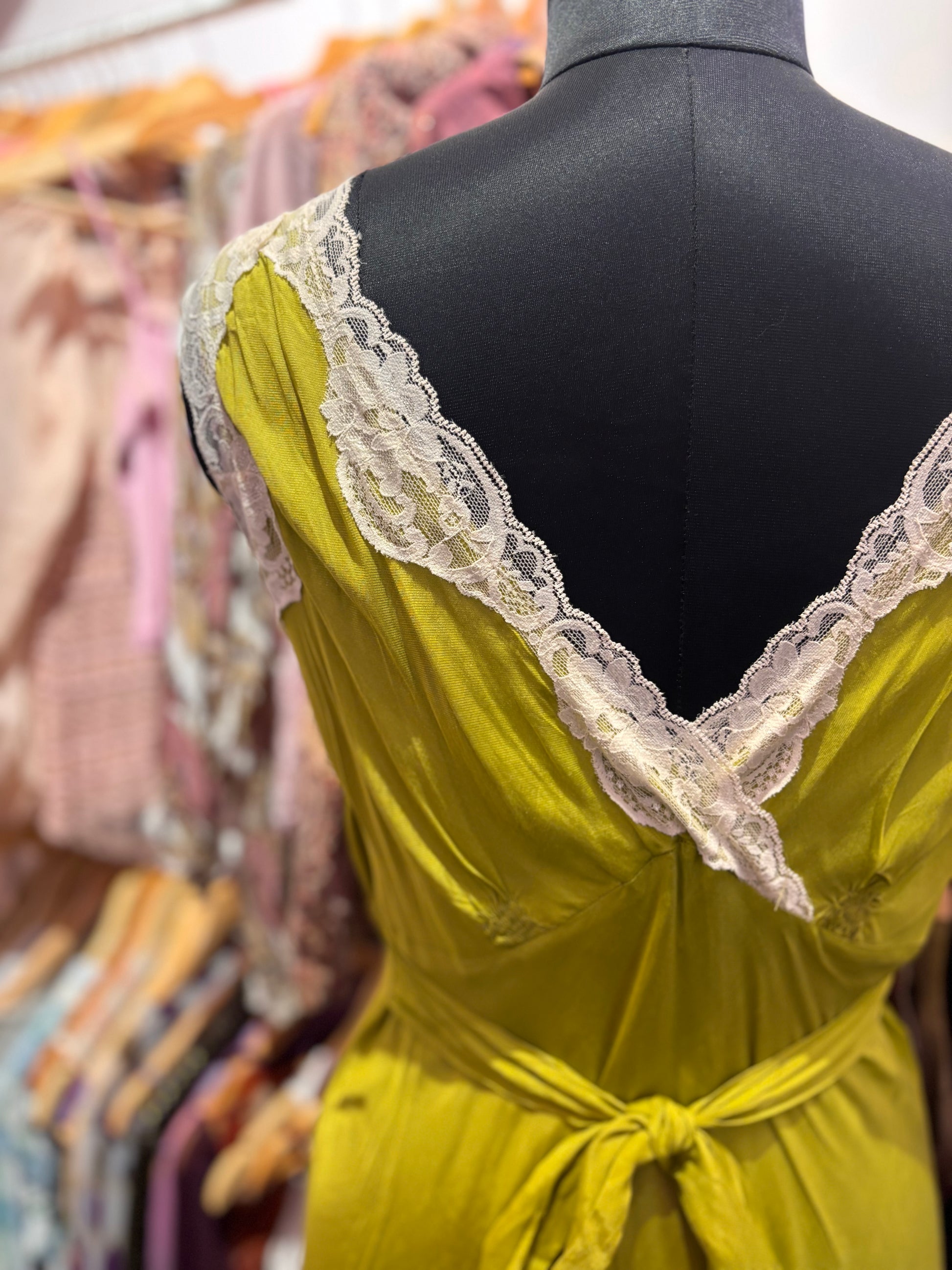 Bust 34 ( wearable upto 40) inches. Length 27 inches. Satin. Lacy neckline. Back ties.