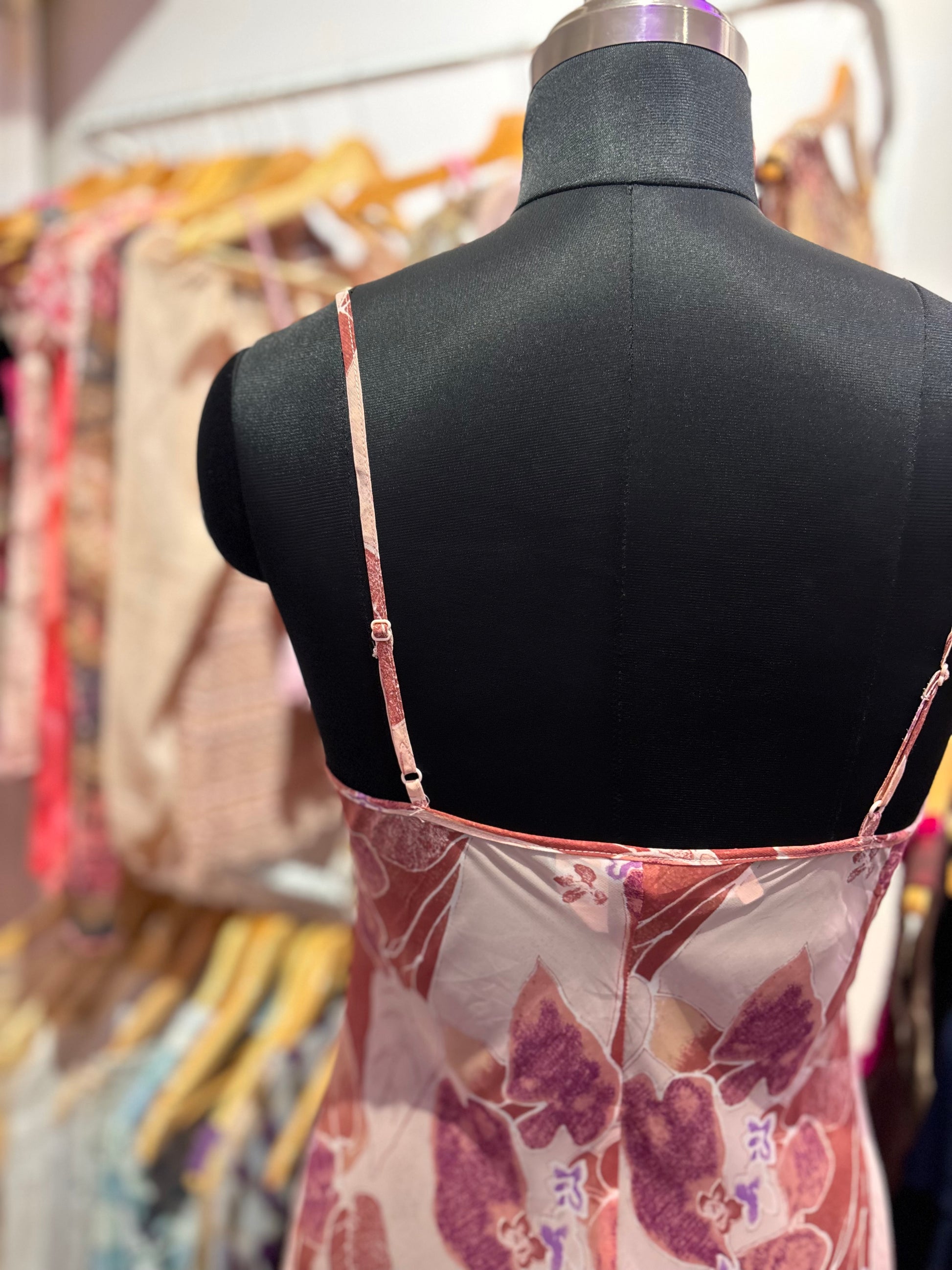 Bust 34/36 inches. Length 26 inches. Georgette. Adjustable straps