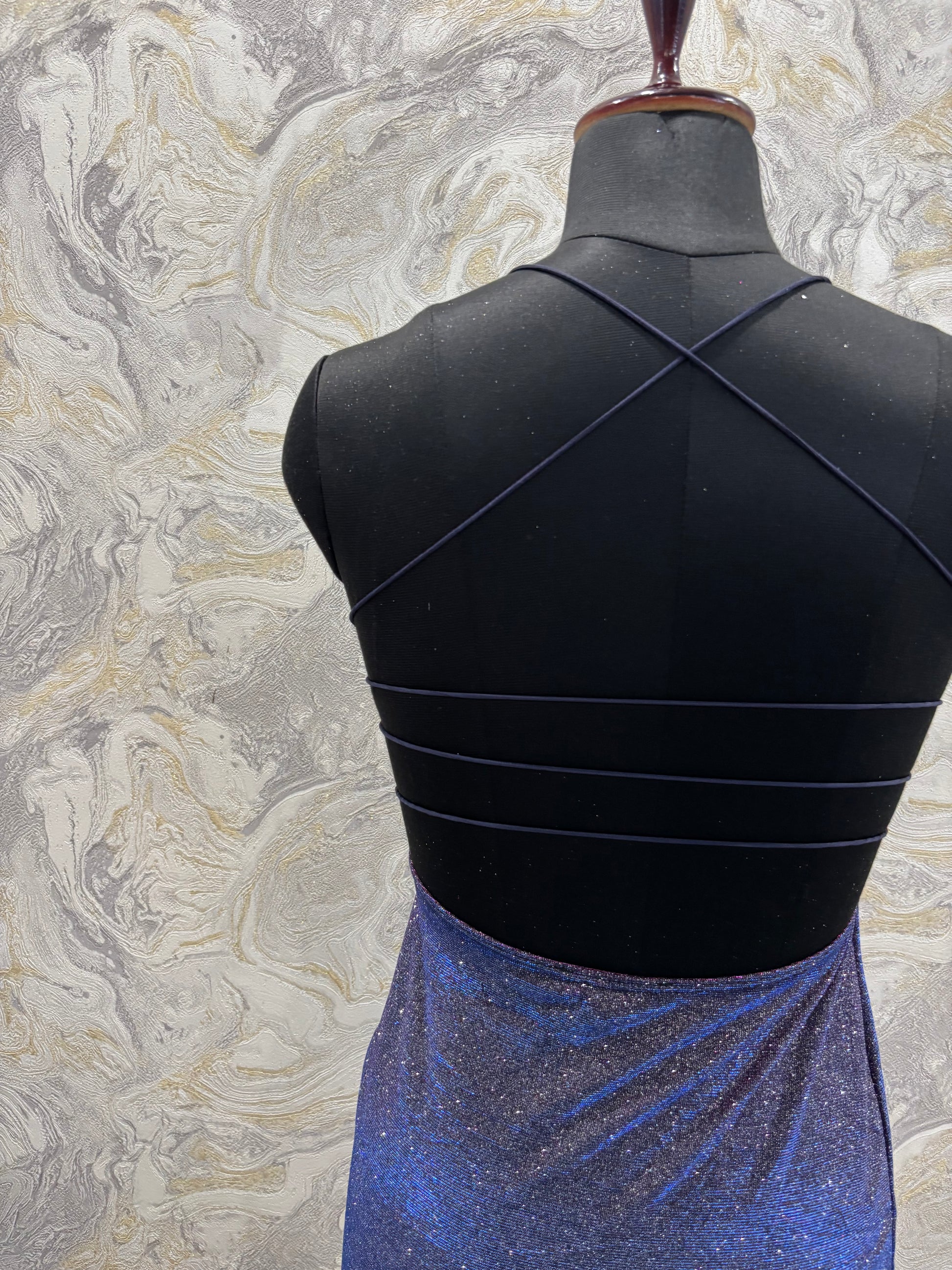 Bust 34 ( stretches upto 40) inches. length 34 inches. Mesh. Body con.