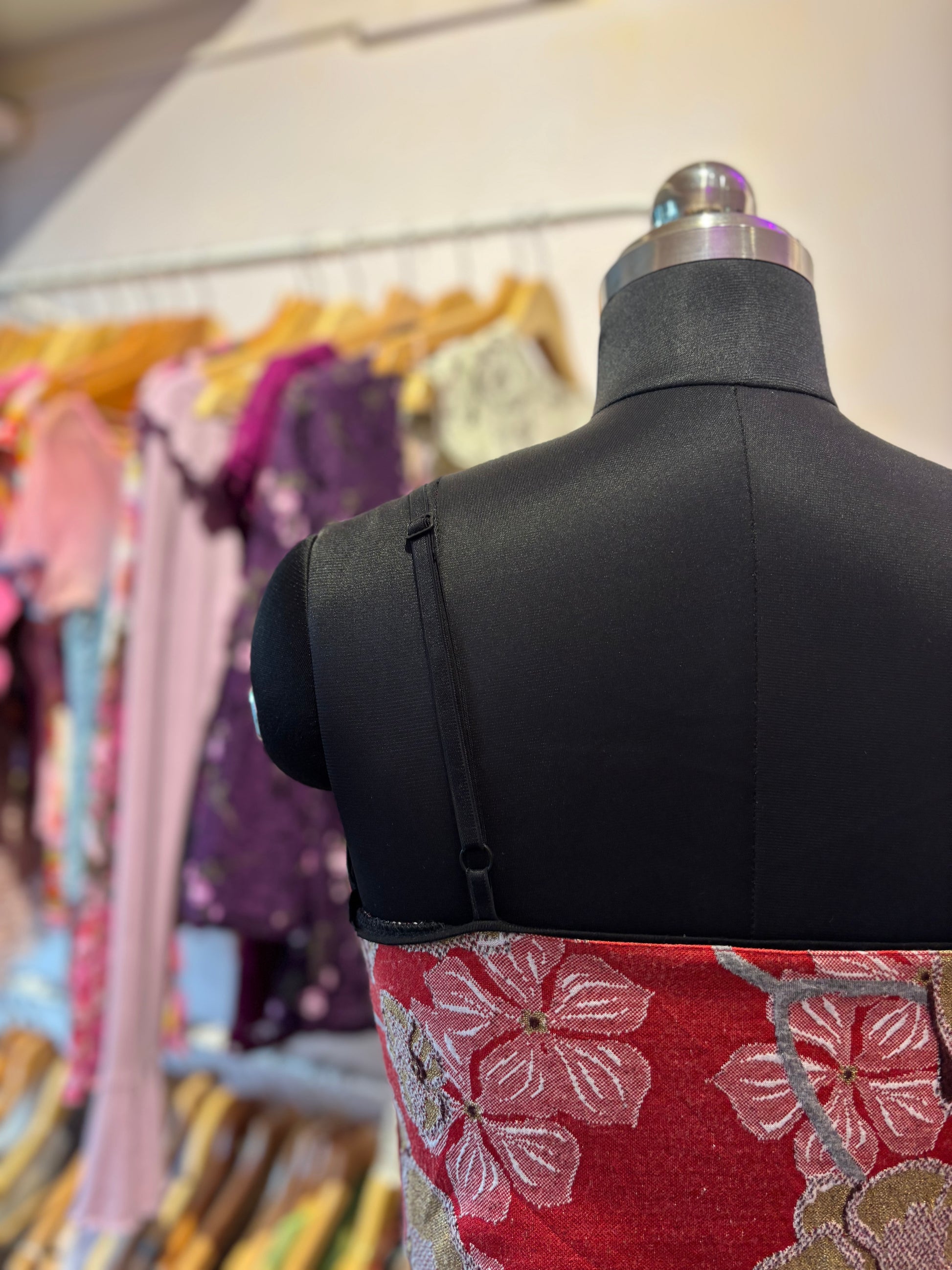 Bust 30 ( stretches upto 34) inches.Length 15 inches.Adjustable straps.Lined