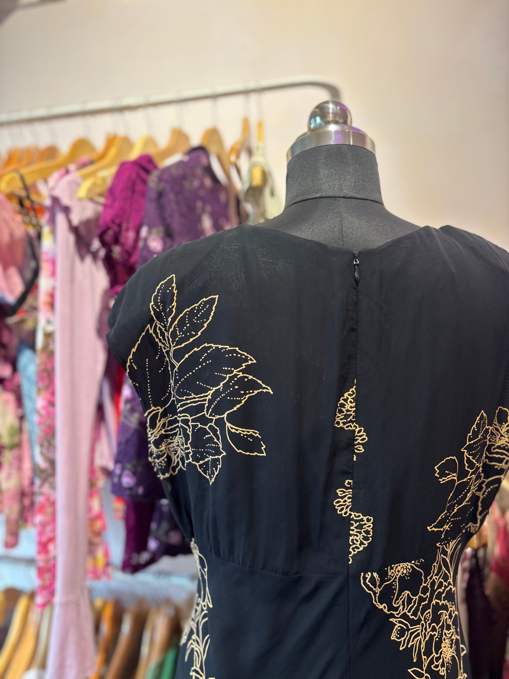 Bust 40/42 inches. Length 36/38 inches. Length 52 inches. Chiffon. Lined.