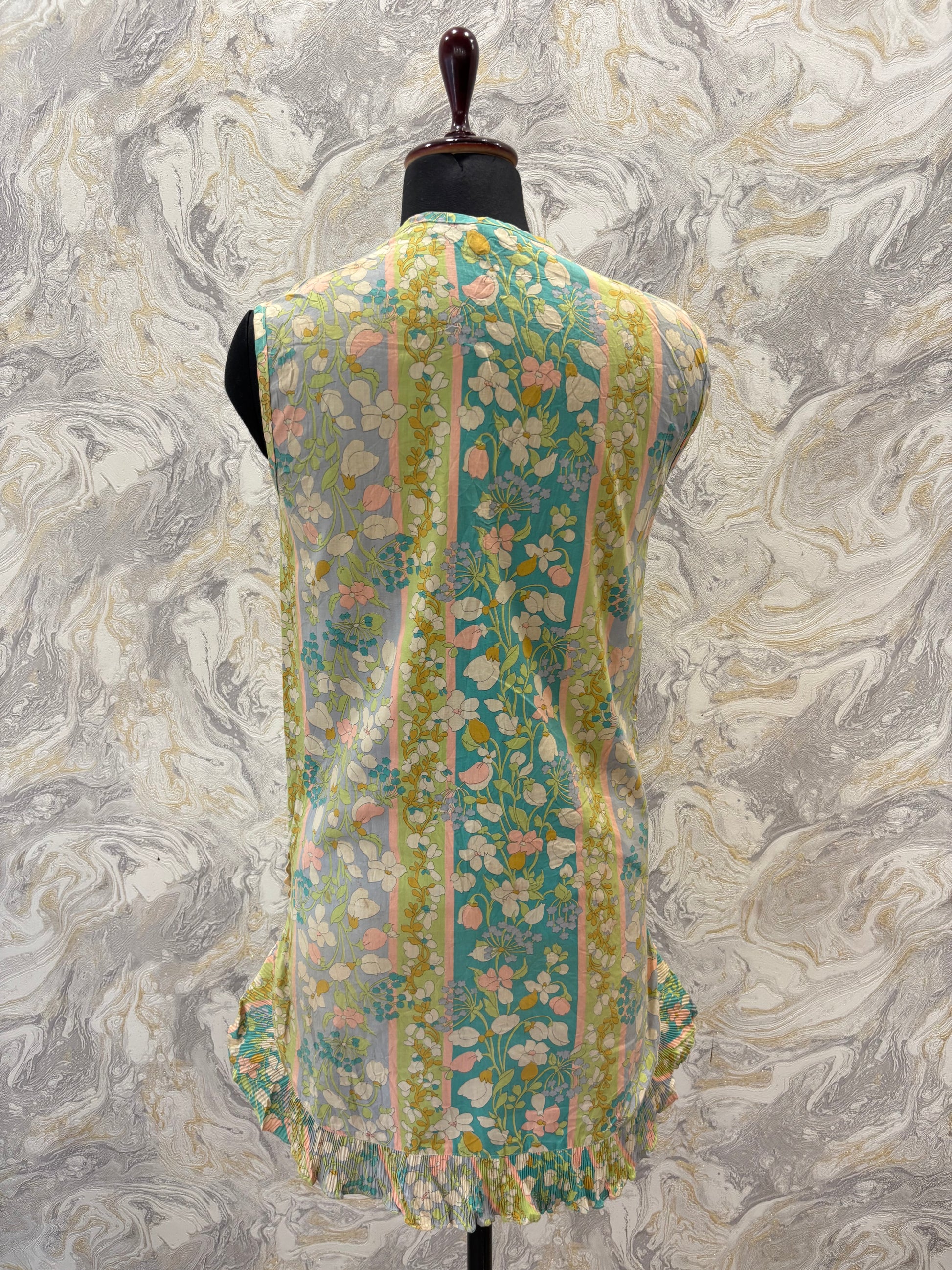 Bust fits 34/36 inches. Length 34 inches cotton. Front zip. Two pockets.