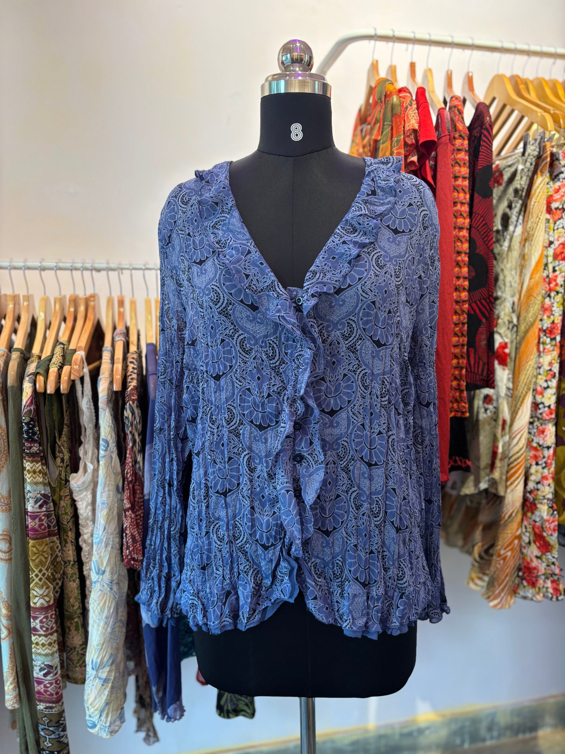 Indigo crinkled ruffle shirt